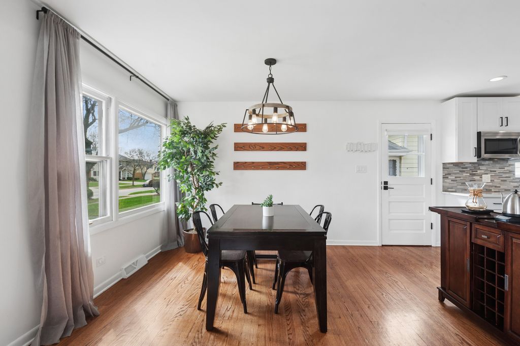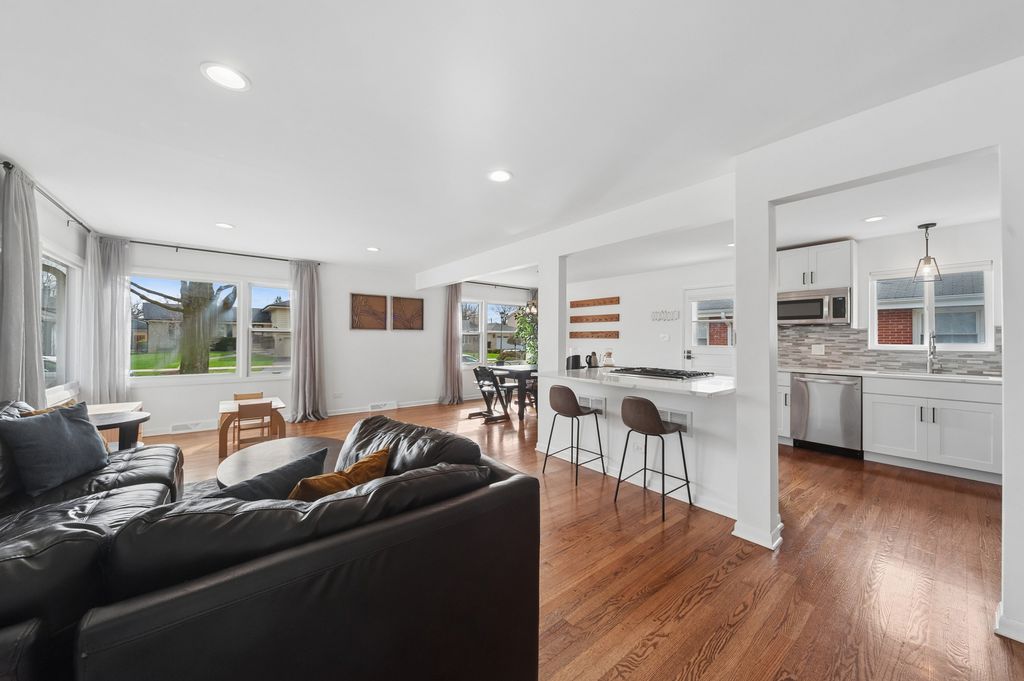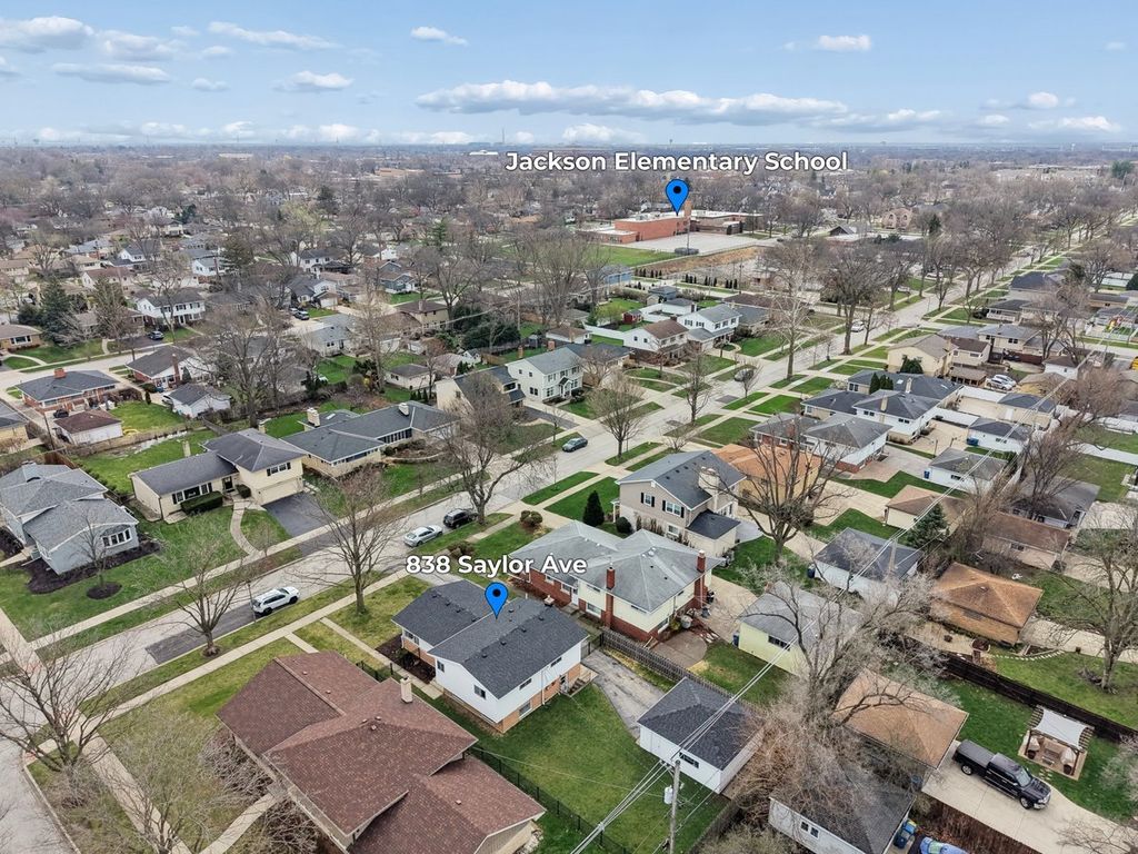 838 S Saylor Ave is an updated, charming, and move-in-ready split level in a great location of Elmhurst! This home features a spacious and inviting modernized open-concept floorplan that is perfect for both everyday living and entertaining. Step inside to discover a bright and airy updated kitchen, living room, and dining room, where large windows fill the space with sunshine and create a warm and welcoming atmosphere. Gleaming hardwood floors add beauty and character throughout much of the home, while the open feel of the main living areas provides plenty of room to gather with family and friends. The sun-filled fully renovated kitchen featuring a large center island offers abundant cabinet space, ample room for meal preparation, and a charming window above the sink that brings in even more natural light. Upstairs, you will find three comfortably sized bedrooms and an updated full bath with modern fixtures. Your primary bedroom has its own private half bath for added convenience. The lower level offers even more living space with a large family room that is perfect for relaxing, movie nights, entertaining, a playroom, or a home office. An additional half bath on the lower level adds functionality and convenience. Outside, the property continues to impress with a detached 2-car garage and a fenced in yard and outdoor space ready to enjoy. Welcome home!