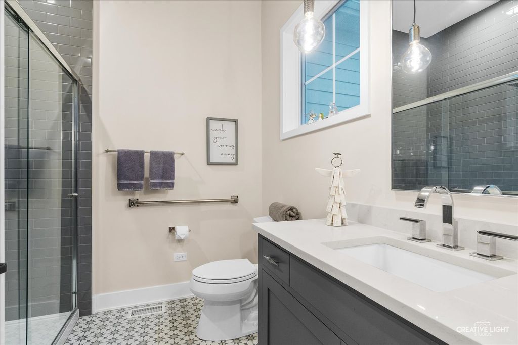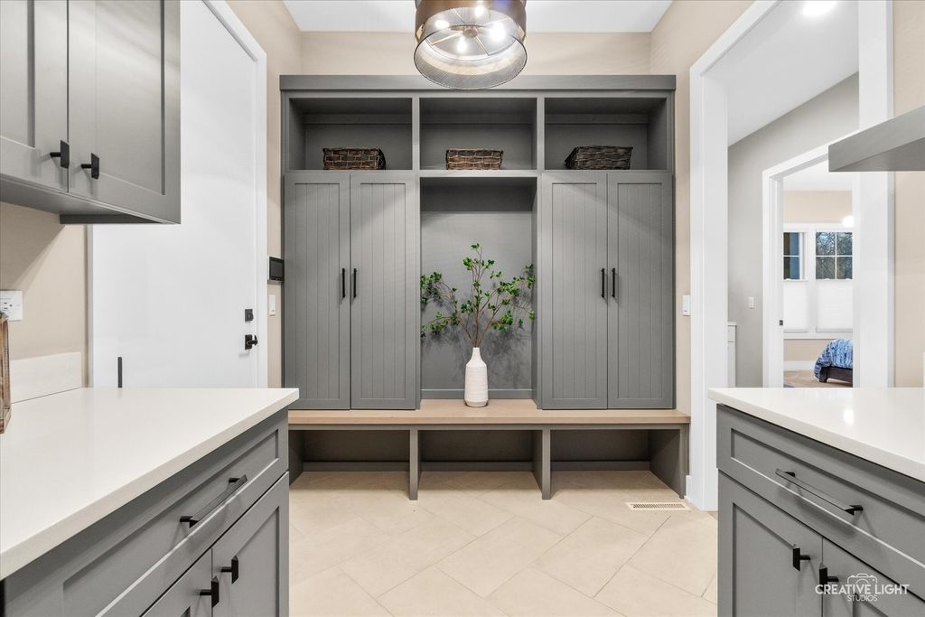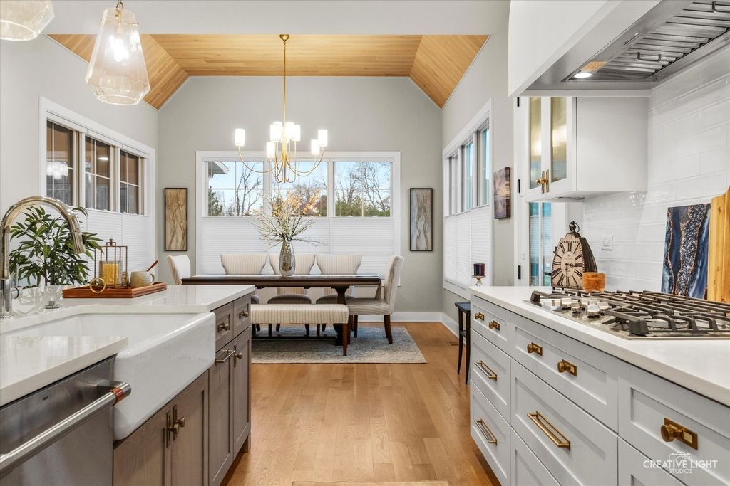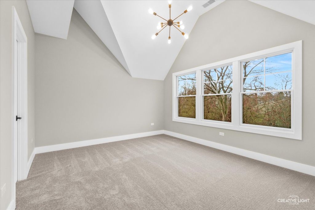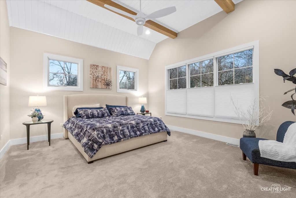 This exceptional custom home, built in 2022, offers a rare blend of refined design, elevated finishes, and an unbeatable location. From the moment you arrive and step onto the covered front porch, the craftsmanship and thoughtful detail are immediately apparent. The foyer opens to a breathtaking great room where soaring two-story ceilings, a statement fireplace, custom built-ins, plumbed for an elevator, and motorized blinds create a space that is both dramatic and inviting, all bathed in natural light. Rich hardwood flooring carries you into the heart of the home-a stunning chef's kitchen designed for both beauty and function. A striking quartz island anchors the space, complemented by custom cabinetry featuring specialized storage for every need, from utensils and spices to cookware and baking essentials. Elegant blue tile accents provide a sophisticated backdrop to the Cafe stainless steel appliances. The adjacent breakfast room is a showpiece of its own, surrounded by windows on three sides and highlighted by a beautifully detailed wood ceiling, while a spacious walk-in pantry ensures everything has its place. The main level primary suite is a true retreat, showcasing a designer ceiling with wood beams, a custom walk-in closet, and a spa-inspired bath complete with dual vanities, a tiled shower with seating, heated tile floors, and a private water closet with a smart toilet with bidet. This level also offers a second bedroom, a versatile den, a formal dining room, a full bath, and an exceptionally well-designed utility room with abundant storage for everyday living. The four-season room is not to be missed, featuring a wood ceiling and heated bluestone floors, creating a cozy yet sophisticated space to enjoy year-round. Upstairs, a spacious loft overlooks the great room and is flanked by two generously sized bedrooms. The thoughtfully designed full bath includes a beautifully tiled tub and shower area that can be separated by a pocket door, allowing for added convenience and privacy. The basement continues to impress, offering direct access to the garage, a completed full bath, and endless possibilities for additional living or entertaining space. The oversized three-car garage is equipped with an electric vehicle charging outlet, while the home's advanced mechanical systems-including dual zoned HVAC with humidifiers, two 200-amp panels, multiple water heaters including one dedicated to radiant heat, a passive radon system, and a whole-house generator-ensure comfort, efficiency, and peace of mind. Set on nearly two picturesque acres with a natural wetland and direct adjacency to the Prairie Path, the outdoor setting is as remarkable as the interior. A slate patio and covered back porch with gas grill, create the perfect backdrop for entertaining or relaxing in a serene environment. All of this is complemented by highly acclaimed District 200 schools, along with convenient access to shopping, dining, and nearby forest preserves, making this home a truly extraordinary offering.