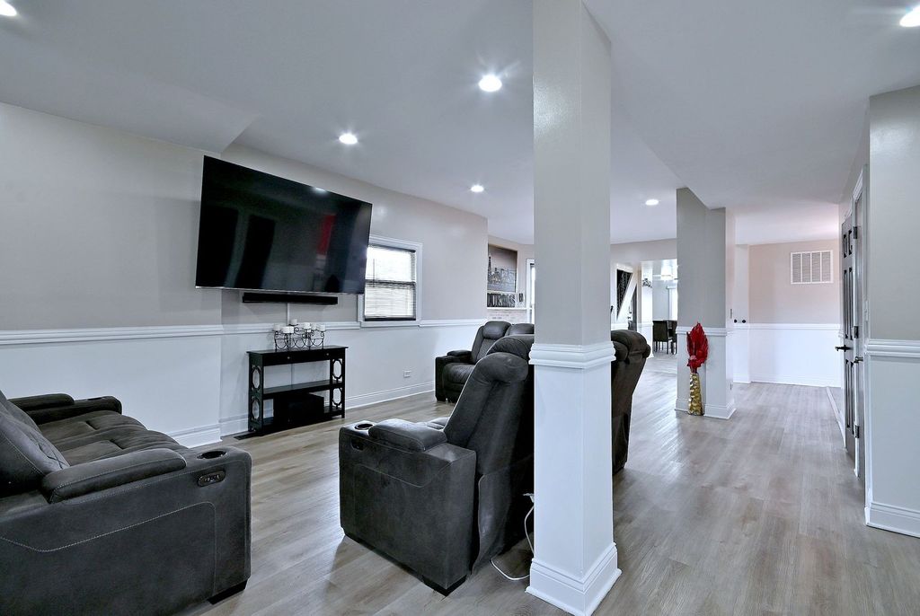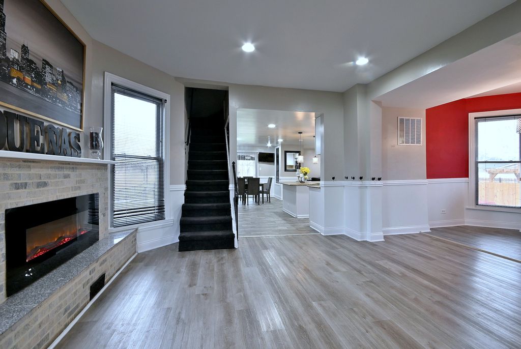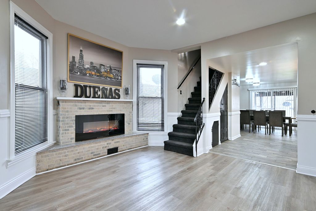 Victorian Meets Modern Living! Prepare to be captivated by this stunning 4-bedroom, 2.1-bathroom Victorian home that perfectly blends character with a sleek, modern flare. Boasting 8 spacious rooms and an open-concept layout, this residence is designed for both comfortable living and entertaining. The heart of the home features a super kitchen with a custom island, seamlessly flowing into the living areas. Retreat to the expansive master suite, complete with a private full bath and a generous walk-in closet. For additional living space, head down to the full finished basement, featuring a cozy family room and one of the home's two electric fireplaces. Modern Amenities: New central air, 200+ amp electrical service, and contemporary laminate flooring. Outdoor Living: Situated on an oversized lot, the property features a large deck perfect for summer BBQs and a fully fenced yard. A wide concrete driveway leads to a detached 2-car garage, providing ample space for vehicles and storage. Don't miss your chance to own this Maywood gem-beautifully renovated inside and out. Come and see for yourself! THIS HOME IS NOT FOR RENT!