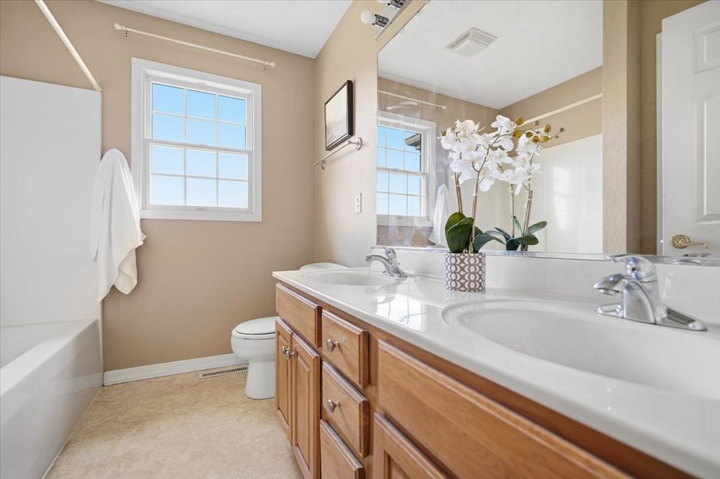Great 4 bedroom home on a Cul de Sac in Eagles Landing. Eat in Kitchen that includes all appliances and island that opens to family room w/gas fireplace and 9 foot ceilings. Formal Living or Office on main level with Formal Dining Room. Large primary Suite with huge walk in closet, garden tub and separate shower in primary bath. Basement is framed and ready for you to finish to your preference. Oversized 2 car garage with a bump out. Fresh carpet and paint. Faces North.