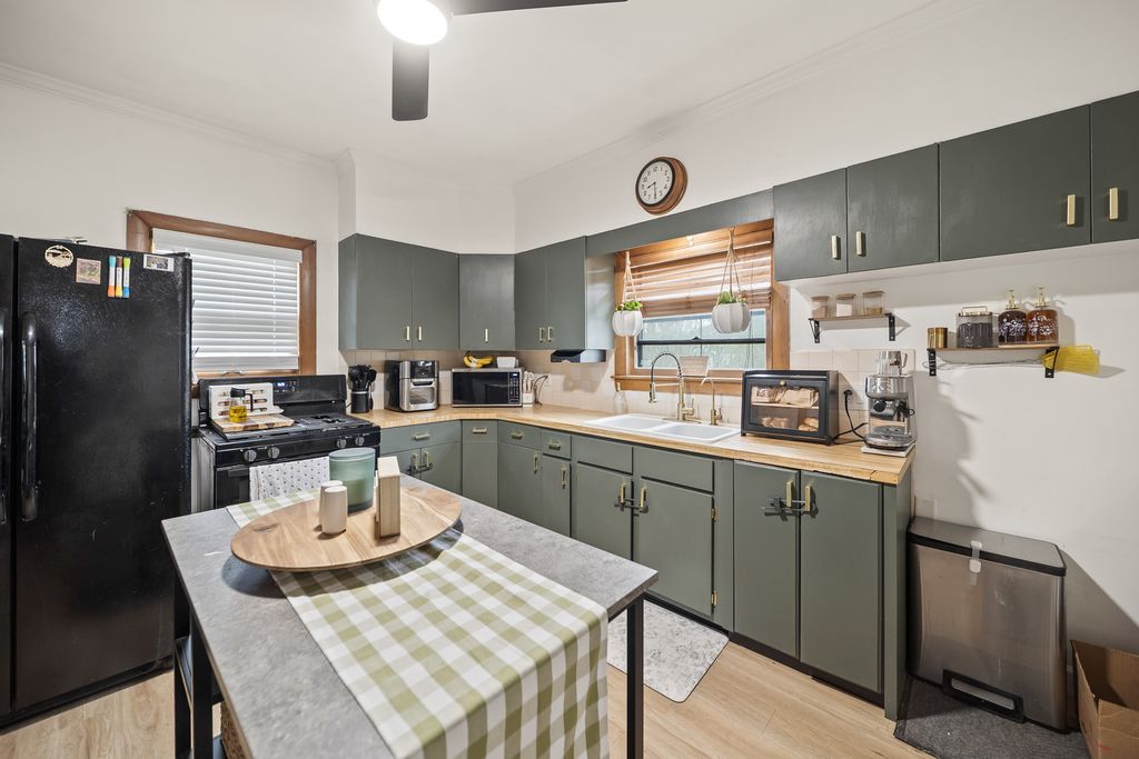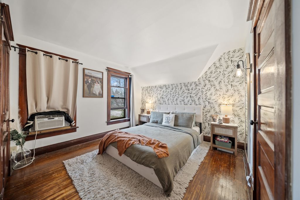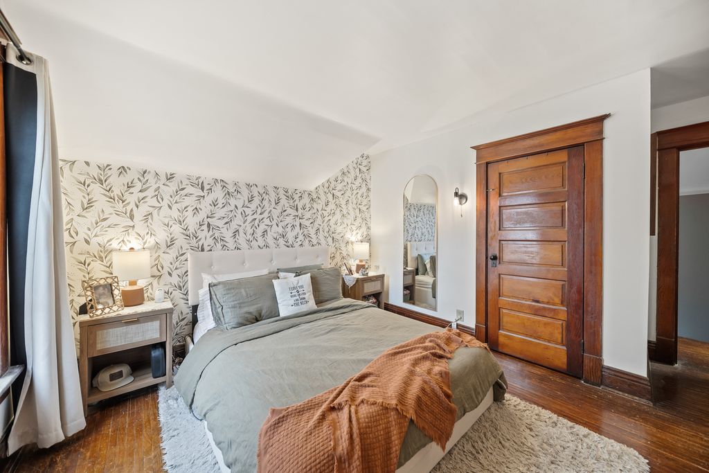 Welcome home! This home is cute, stylish, and updated throughout. An enclosed front porch greets you, perfect for morning coffee on the bench swing, or an easy drop zone as you come and go. The main level features a comfortable living room, a large dining room, a spacious kitchen, and a convenient guest bathroom. Upstairs, you'll find two great-sized bedrooms, including one with double closets, along with the full bathroom. This home has been lovingly cared for over the years, with character details throughout like refinished original woodwork, wainscoting in the bedroom, and a chair rail in the entry for that elevated touch. Outside, you'll love the huge, fully fenced backyard with a large double gate off of the alley access. There's also a shed and a nice bonfire area, giving you plenty of space to relax or entertain. Conveniently located near Vander Veer Park, this is a great opportunity for anyone looking for a move-in ready home.
