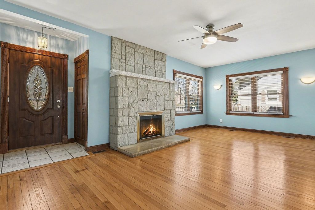 This beautifully maintained home is truly move-in ready, featuring a long list of thoughtful updates and modern finishes throughout, including hardwood floors, fresh paint, and updated fixtures. The roof was replaced in 2021, and all windows were updated in 2020, offering peace of mind and improved energy efficiency. The home also features zoned HVAC with separate systems for the first and second floors, providing optimal comfort year-round. The stunning kitchen was completely renovated in 2023 and showcases quartz countertops, a sleek glass backsplash, 42-inch cabinets with integrated lighting, black stainless steel appliances, and recessed can lighting-perfect for both everyday living and entertaining. The spacious primary suite offers a large bedroom, a walk-in closet, and a full en-suite bath updated in 2017, featuring a soaking tub/shower combo with a sitting area. Additional bathrooms have been tastefully updated, including a full basement bath (2026) and a refreshed first-floor bath (2022). Step outside to enjoy a fully fenced yard with plenty of green space and added lighting (2017), along with a freshly painted exterior (2024), enhancing both curb appeal and outdoor enjoyment. A convenient backyard gate provides a shortcut for an easy walk to the nearby school. Car enthusiasts or hobbyists will appreciate the 3-car garage, complete with a heater for year-round use. Combining modern updates, functionality, and location, this home is ready for its next owner. Schedule your showing today and make it yours.