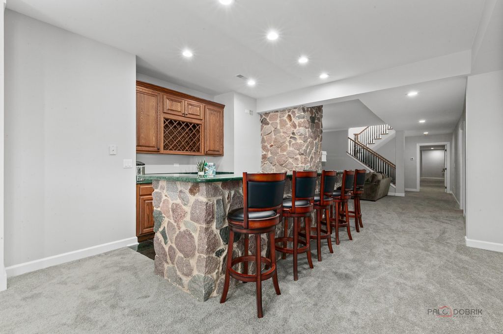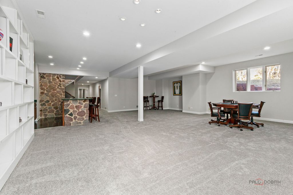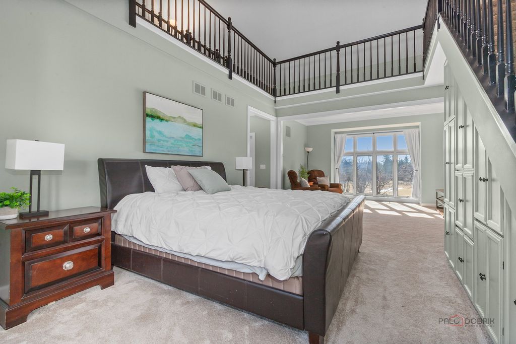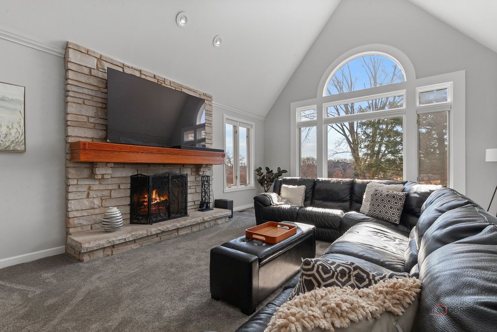 Welcome to an extraordinary all-brick estate set within the prestigious gates of Wynstone, where timeless architecture meets resort-caliber living. Move-in ready with a newer roof/new mechanicals! Perfectly positioned on nearly 1.5 acres at the end of a serene cul-de-sac and set high above the street for added prominence and privacy, this magnificent 5-bedroom, 5.3-bath residence offers over 13,000 square feet of uncompromising luxury and breathtaking golf course views from nearly every vantage point in the home. From the moment you enter, a grand foyer crowned with a soaring tray ceiling and dazzling statement chandelier creates an unforgettable first impression, introducing the refined craftsmanship and architectural artistry found throughout. The original builders spared no expense-solid wood doors, exceptional millwork, and high-end finishes speak to the enduring quality and thoughtful design poured into every detail. HEATED FLOORS are throughout the whole home, including in the garage and the indoor basketball sport court-an impressive feature rarely found. Designed for both elegant entertaining and elevated everyday living, the home unfolds with beautifully appointed formal living and dining rooms ideal for intimate dinners or grand-scale gatherings. At the heart of the home, the gourmet chef's kitchen is a true showpiece, anchored by an expansive island with breakfast bar seating, professional-grade stainless steel appliances, a generous walk-in pantry, and seamless access to the outdoor living spaces-perfectly positioned to capture the home's gorgeous golf course vistas. The adjacent family room is nothing short of spectacular, showcasing a dramatic floor-to-ceiling stone fireplace, cathedral ceiling, custom dry bar, and walls of windows that flood the space with natural light. Just beyond, a sun-drenched sunroom with a private hot tub provides year-round relaxation in a setting that feels both luxurious and secluded. The main-level primary suite is a private sanctuary unlike any other, featuring a remarkable two-level loft design, serene sitting area, oversized walk-in closets, and a spa-inspired bath complete with dual vanities, a soaking clawfoot tub, and a separate glass-enclosed shower. A richly appointed private office or library impresses with a coffered ceiling, floor-to-ceiling stone fireplace, and exclusive backyard access-creating a refined and tranquil work-from-home retreat. Upstairs, 4 additional bedroom suites each feature their own private ensuite baths and expansive walk-in closets, complemented by imaginative lofts, bonus spaces, and hidden retreats rarely found in luxury homes. A spacious central playroom anchors the third level, seamlessly connecting the various lofts and flexible spaces to create a dynamic and functional living environment. A spectacular in-law or guest suite includes its own lounge with built-in sauna and overlooks the home's show-stopping indoor half-court basketball court-an extraordinary amenity that truly sets this estate apart. The full finished English basement is complete with an expansive recreation room with fireplace and wet bar, dedicated game room, exercise studio, huge cedar closet, and a private home theater delivering a true cinematic experience. Outdoors, the nearly 1.5-acre setting offers exceptional privacy and sweeping golf course views, with grand Bluestone patio and two outstanding locations ideal for a future pool-creating the opportunity to design a true backyard resort. Completing the estate is a 5 car garage with the attached INDOOR BASKETBALL COURT, allowing for year-round recreation and convenience. 2021 Roof with new gutters and leaf guard!! All of the bedrooms in the home are en-suites. Grand in scale yet thoughtfully designed for luxurious comfort, this remarkable residence offers an unparalleled lifestyle of elegance, privacy, superior craftsmanship, and endless possibility-all within one of the region's most exclusive gated golf course communities!