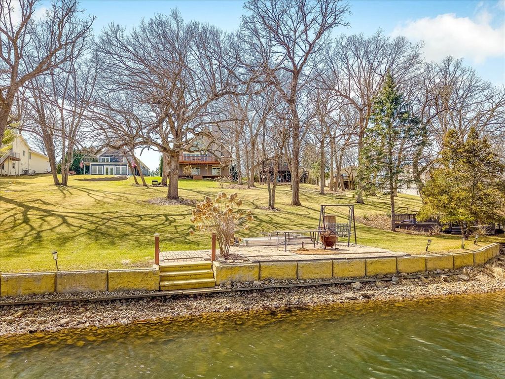This exceptional LAKEFRONT home offers private shoreline access, and the perfect setting for year-round enjoyment! Enjoy80 FEET OF SHORELINE with a NEWER CONCRETE BLOCK SEAWALL and BRICK PAVED PATIO in this beautifully maintained home showcasing quality craftsmanship throughout. The OPEN-CONCEPT DESIGN features a spacious kitchen with gorgeous granite countertops, tiled backsplash, and a large pantry, flowing seamlessly into the living room with vaulted ceilings, a striking two-story stone fireplace, and walls of Pella windows overlooking the water. A bright sunroom on the main level provides the perfect space to relax and take in the views. The main floor includes two bedrooms, a full bath, and convenient first-floor laundry. The upper-level primary suite offers a walk-in closet and private en-suite bath with dual sinks and a large tiled step-in shower. A laundry chute from the upper level adds extra convenience. The walkout lower level is filled with natural light and features a full bath with step-in shower, a covered patio, and additional storage space with a separate entrance-ideal for a golf cart, kayaks, and all your lake toys. Additional highlights include an EXTRA-DEEP,HEATED 3-CAR GARAGE with basement access, zoned heating and cooling, electric sunshade off the deck, fresh paint(2025), and a newer roof (2020). This is a rare opportunity to own a move-in ready lakefront home offering stunning views, exceptional features, and the ultimate lake lifestyle. THIS IS A MUST SEE!