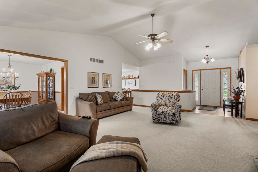 Beautifully maintained ranch home with a fully finished basement, located in the highly desirable Sandy Ridge neighborhood of Mahomet. Start your day with a cup of coffee on the serene screened-in porch, or unwind in the evening by the cozy fireplace beneath stunning vaulted ceilings in the living room. The home features newer stainless steel appliances, along with a recently updated roof and HVAC system offering both style and peace of mind. The expansive finished basement provides incredible additional living space, including a large family room, full bathroom, and two additional bedrooms. Don't miss the impressive storage areas that make organization effortless. This home truly offers the perfect blend of comfort, space, and functionality.