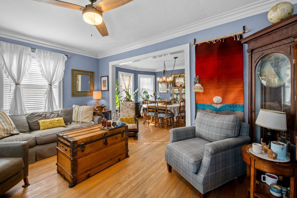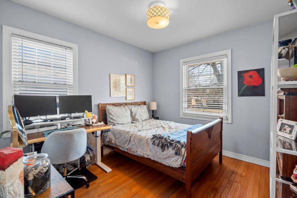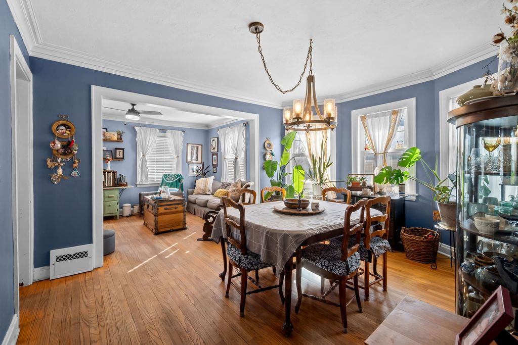 Charming bungalow offering a blend of character, functionality, and inviting indoor-outdoor living. This 3-bedroom, 1-bath home features hardwood flooring, abundant natural light, and a well-designed layout that creates a comfortable flow between living, dining, and kitchen spaces. The main living area showcases classic architectural details and connects seamlessly to a dedicated dining room, while the kitchen offers ample cabinetry and efficient cooking space with convenient access to the backyard. The two main floor bedrooms are well-sized with flexible use options, including workspace or guest accommodations, and the upstairs bedroom, encompassing the full converted attic, allows for ample privacy. The full basement provides additional storage and future potential. Outdoor features include a deck designed for relaxing or entertaining, overlooking a large yard with mature trees and open space, along with a driveway for off-street parking. Conveniently located with access to local amenities, dining, shopping, and transportation routes, this property presents a versatile opportunity with lasting appeal.