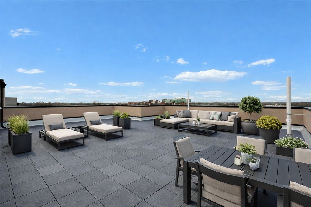 Stunning new construction top floor 3 bedroom, 2 bath residence in a boutique 9-unit elevator building located in Lincoln Square. This exceptional home offers a thoughtfully designed open floor plan anchored by a show-stopping custom kitchen featuring slim shaker cabinetry, a 9' oak island, decorative hood cover, LED accent lighting, brass fixtures and stainless steel KitchenAid appliances. The expansive living and dining area boasts 10' ceilings and oversized windows that flood the space with natural light. The primary suite serves as a serene retreat, highlighted by radiant heated floors in the spa-inspired bathroom, a large walk-in shower, and double sink oak vanity. Two additional bedrooms and a beautifully appointed full bath complete the bedroom wing. Designed to extend living outdoors, the home features 14' x 9' private garage deck off the living area as well as 1200 SF private rooftop deck finished in porcelain pavers, ideal for entertaining. One heated garage parking spot included. Photos of different layout with same finishes. Deliveries beginning in May 2026.