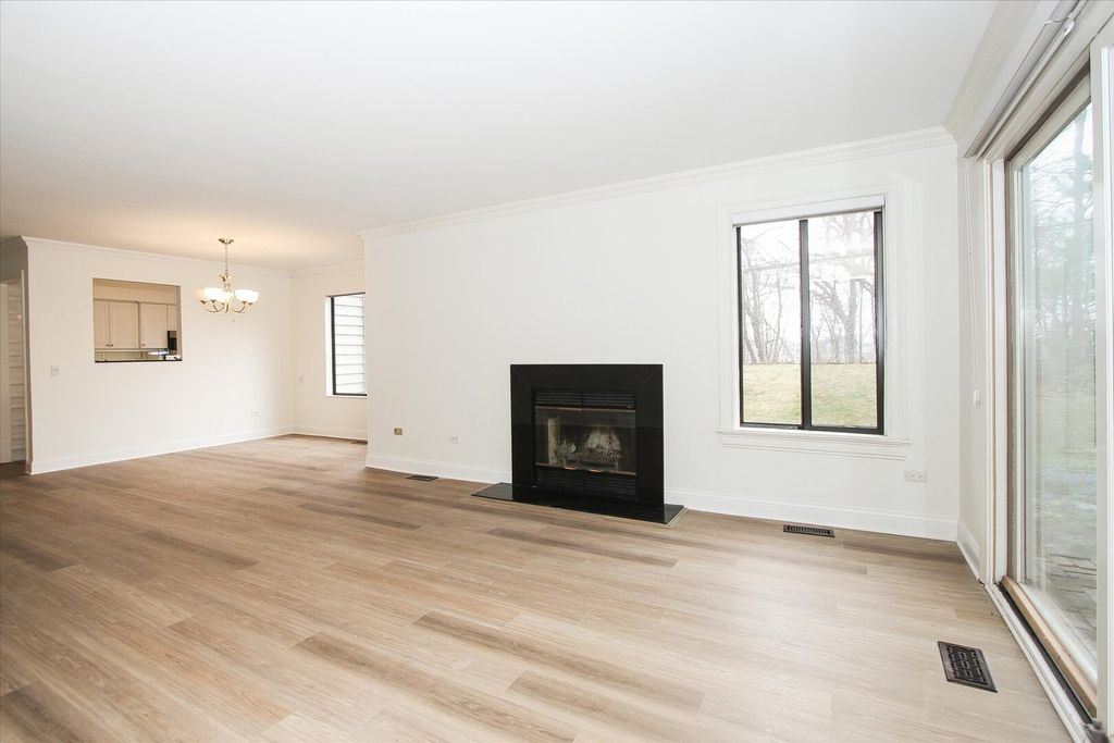 If you want ONE FLOOR LIVING this is the place; APPRECIATE the convenience of the washer and dryer and mechanicals on the main (and only) floor; Direct entry garage into the foyer; ADDITIONAL PLUSES include: Luxury vinyl flooring, newer windows, Kitchen with white cabinets; cozy living room with fireplace; Master bath with NEW WALK-IN SHOWER AND TILE FLOORING; patio with wooded views and setting; Building has a newer roof and repaired siding in the last 5 years; GREAT LOCATION ON quiet cul-de-sac and easy in and out access to Miller Road; Extra parking available immediately across from the garage; 18 hole golf course for membership play; All to enjoy in A RESORT-STYLE GATED COMMUNITY WITH LOTS OF ACTIVITIES AND AMENTIES - 100 acre lake, 37 acre forest preserve, walking trail, In & Outdoor pools, Marina with sailboats, kayaks, canoes for resident use, 8 tennis courts, Bocce courts, Pickleball, Platform tennis; RENOVATED COMMUNITY BUILDING WITH a Ballroom, Party room, Fitness Center, Card/game room, Library and more; Lots of Activities and organizations FOR ALL AGES to enjoy, Highly rated Barrington schools; FULL TIME SECURITY; a WELCOMING LIFESTYLE where there is no need to worry about mowing your yard, cleaning your gutters, repairing your roof, etc. RELAX and ENJOY