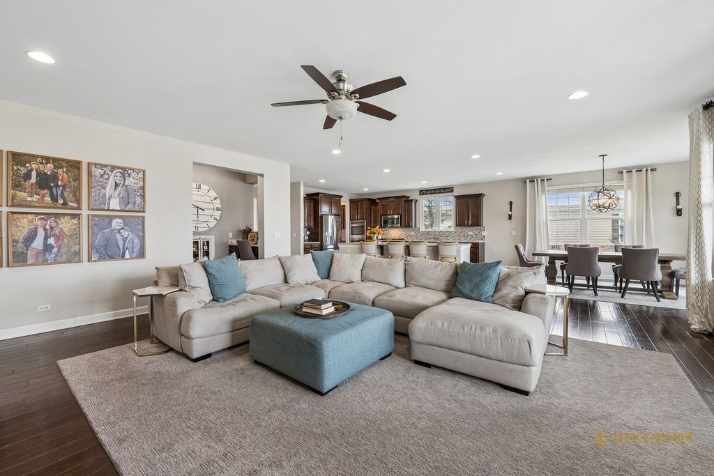 Stunning home in sought-after Sanctuary Club offering the perfect blend of luxury, space, and functionality! This expansive 5-bedroom, 5-bath residence features an open-concept layout ideal for both everyday living and entertaining. The gourmet kitchen boasts granite countertops, a large center island, butler's pantry, and spacious eat-in area, all flowing seamlessly into the inviting family room with fireplace. A formal living room and rich hardwood flooring throughout the main level add warmth and elegance. The second level offers a versatile loft and convenient laundry room, along with a truly impressive primary suite complete with a sitting area and an oversized walk-in closet. Three additional bedrooms and three full baths provide ample space for family and guests. A main-level bedroom with full bath is perfect for in-laws or a home office. The finished basement is an entertainer's dream featuring a stunning recreation room, custom bar, and full bathroom. Enjoy the outdoors on the beautiful porch overlooking a scenic walking path, plus a private hot tub for year-round relaxation. Situated on a premium interior lot, this home also includes an extra-wide driveway and numerous updates including a new roof (2024) and hot tub (2020), newly finished basement and new carpeting. Truly a must-see!