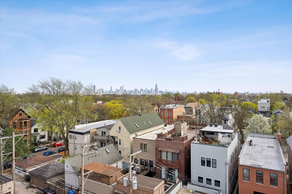OPEN HOUSES AND SHOWINGS CANCELLED! UNDER CONTRACT AS OF 4/17. Dramatic penthouse duplex in the sky, with soaring 13' ceilings, a custom second-floor buildout, 4 outdoor spaces, brand new decks, and an enormous amount of square feet of one-of-a-kind living in one of the tallest buildings in Roscoe Village. From your private elevator access, you step directly into this stunning loft penthouse, where exposed brick, painted concrete ceilings, diagonal hardwood floors, and dramatic windows create a space that simply does not exist anywhere else in the neighborhood. Incredible natural light floods every inch of this home, and the open layout gives an energy that hits you the moment you enter. The main level is built for living. A corner wood-burning fireplace anchors the living room, with a north-facing balcony just steps away. Custom lighting, a dedicated dining area, and a wide-open kitchen with stainless steel KitchenAid appliances, gray cabinetry, custom backsplash, breakfast bar, and pantry make this the kind of space where you actually want to be. The first full bedroom suite on this floor features a south-facing balcony with views toward the iconic Chicago skyline, generous closet space, and an ensuite bath with dual sink vanity and a separate shower and tub. Make it your primary suite, or an ideal room for guests, a nanny, or an au pair. The main floor rounds out with another bedroom and a second full bathroom across the hall. Heading upstairs, you'll find a complete custom buildout including the primary bedroom suite with walk-in closet and a bright ensuite bath featuring a double vanity, large glass shower, radiant heated floors, and a heated towel rack. Separated by a dramatic oversized barn door, the bonus room is perfect for a work-from-home office or gym, plus a unique and cozy lofted play area. And if you thought it couldn't get better, how about brand new composite decks on both ends of this level, offering the best skyline views in all of Roscoe Village. Practically brand new, both decks were installed following a full roof replacement in 2025. Additional improvements include spot tuckpointing and caulking, a new storm door, newer washer/dryer, and window repairs. A dedicated attached garage space and separate storage closet on the ground level complete the package. All of this just steps from the best of Roscoe Village: Le Sud, Commonwealth, Same Same, The Region, Roost, Hamlin and Fellger parks, Retro on Roscoe, and Roscoe Village Burger Fest. Four outdoor spaces. Private elevator access. Custom buildout. Incredible square footage. This is Roscoe Village living at its absolute best.