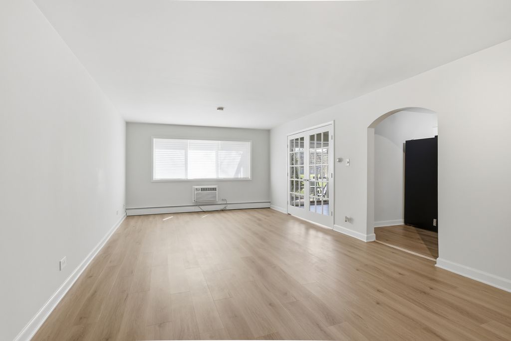 GREAT INVESTMENT OPPORTUNITY! Spacious 2-bedroom ground-floor unit with desirable south exposure overlooking beautifully maintained courtyard grounds. This unit features brand new flooring throughout and fresh paint, offering a clean, move-in-ready space with excellent potential to build equity. Functional layout includes a bright living area, a kitchen with table space, and a large primary bedroom with an oversized closet. Enjoy outdoor living with a private patio facing green open space. Unit offers dual access via a main front entrance and a rear door that leads directly to parking, basement laundry, and storage. Includes 2 assigned tandem parking spaces. Well-maintained community with playground, tennis courts, walking paths, and tree-lined grounds.Sold AS-IS and priced accordingly. Strong rental potential - ideal for investors or owner-occupants seeking value, space, and convenience.
