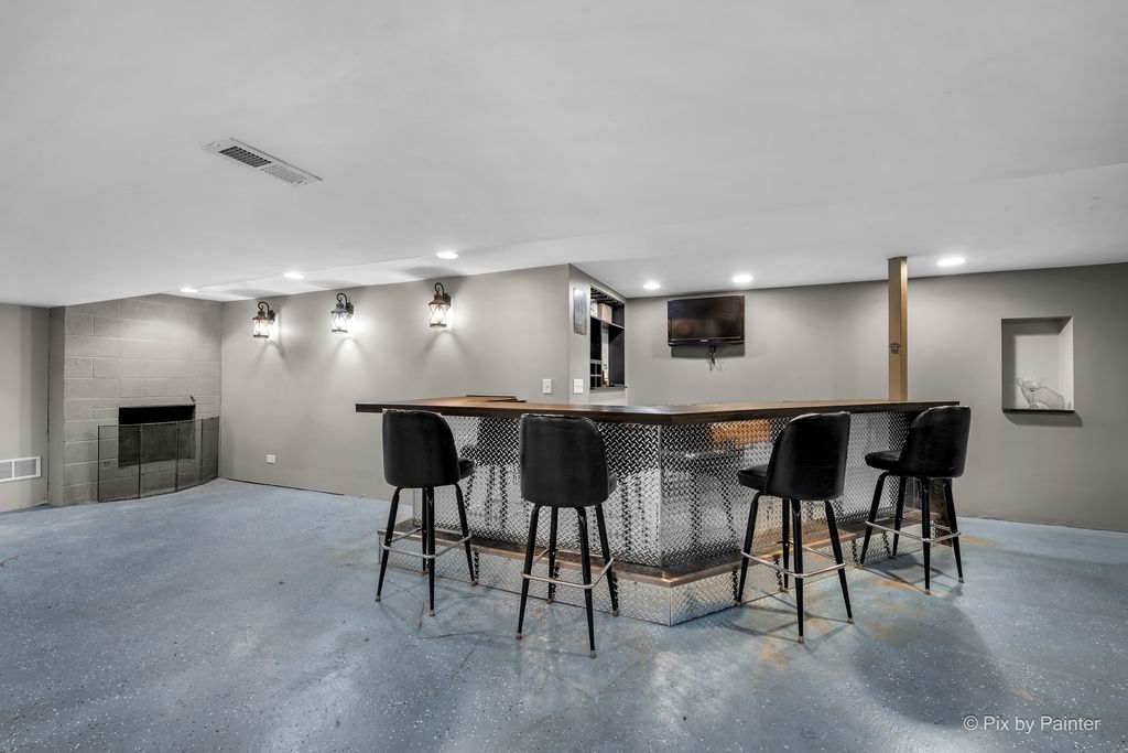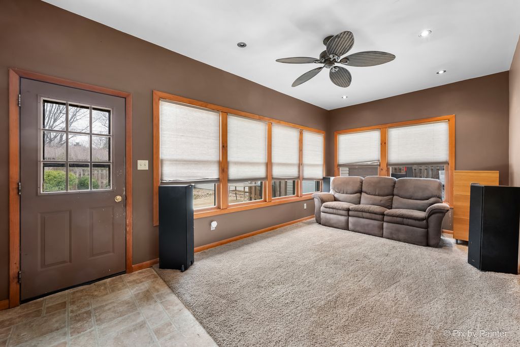 A rare find in unincorporated Sycamore-this brick ranch offers incredible garage space paired with a flexible, spacious layout. With 4 bedrooms and 3.1 baths, this home is ready for its next owner to make it their own. Car enthusiasts, hobbyists, or anyone needing serious space will appreciate the attached 2-car garage, plus an additional 4-car tandem heated garage-a standout feature that's hard to find and perfect for projects, storage, or extra vehicles. Inside, the custom kitchen features maple cabinetry with a pantry cabinet and connects to the dining and family rooms. A unique three-sided fireplace adds warmth and character between the main living spaces, while a pocket door allows you to separate the kitchen when desired-offering both openness and privacy. The main level includes a primary suite with private ensuite bath, along with three additional bedrooms and a full and half bath. A former three-seasons room has been converted into an additional family room, creating even more space to relax or entertain. The full basement expands your living area with a large family room featuring built-in shelving, a wet bar, second fireplace, laundry area, and a massive crawlspace for storage. Situated on over a quarter acre, the backyard includes a large deck and is already equipped with electric and gas for a future hot tub or pool setup. If garage space, flexibility, and potential are at the top of your list-this is one you won't want to miss. This is an AS-IS listing.