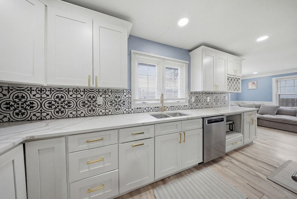 PURSUANT TO SHORT SALE APPROVAL- Completely renovated in 2022; 2-bedroom, 1-bath ranch located in unincorporated Melrose Park-designed with modern living in mind. Open-concept showcases a stunning, fully updated kitchen. Stainless steel appliances, sleek quartz countertops, a spacious waterfall island with breakfast bar seating, built-in range, gold accents, under-cabinet lighting, and a custom wine rack-perfect for both everyday living and entertaining. Wood laminate flooring, recessed lighting, crown molding, and wainscoting details that add a refined touch. The attached one-car garage includes brand-new epoxy flooring and a dedicated laundry area. Step outside to a generously sized yard, ideal for relaxing or hosting during the warmer months.