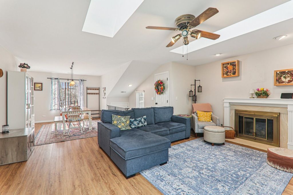 Light and bright 2-bedroom, 2-bath end-unit townhouse with desirable east exposure. This second-level home offers a private exterior entrance and a 1-car garage with direct private access into the unit. The primary suite features a full bath and a large walk-in closet. The oversized living room is perfect for relaxing or entertaining, complete with a fireplace, two skylights, and a sliding glass door that opens to the deck. A separate laundry room.