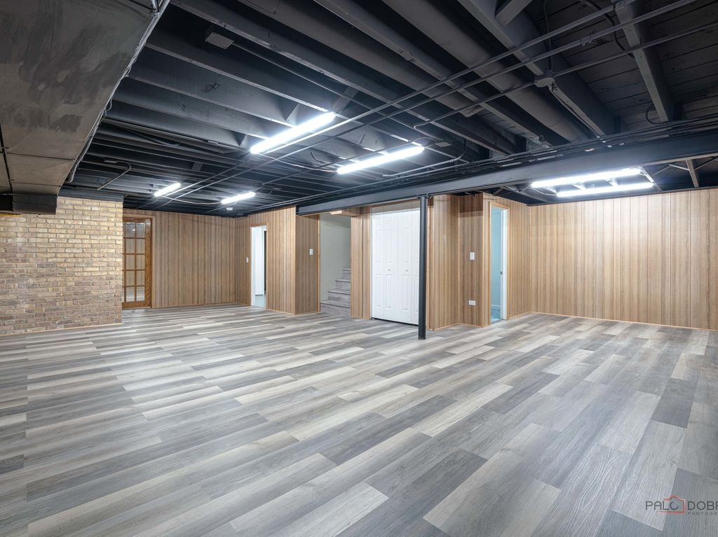 Beautiful 3 bdr.,2 and half bath solid brick ranch home, totally remodeled. Located on a quiet residential street, this home is surrounded by mature trees, an expansive deck , and a patio accessible from both the breakfast room and the master bedroom. The living room boasts vaulted ceilings with a skylight and a custom-made fan, complemented by a wood-burning fireplace. Adjacent to the living room is a small, intimate dining room, ideal for family dinners. The efficient kitchen is equipped with high-end appliances and opens to a breakfast bar with a high countertop. The master bedroom is a private retreat with double sinks and a master bathroom featuring a whirlpool tub. Hardwood floors run throughout the house, adding to its charm and warmth. The full basement includes a powder room and three extra rooms, ready for your creative ideas. Additional features include a new water heater 2024 (+10 y warranty) , new roof and gutters installed in 2023, a standby generator for emergencies, and a sump pump. Situated in a top school district, this home is within walking distance to both an elementary school and a high school. Nearby Sunset Park offers gorgeous oak trees, tennis courts, and playgrounds. The property is just across the street from a community swimming pool. You can easily walk to the downtown area, offering a variety of shows, restaurants, and entertainment. Additionally, you're just minutes from Route 41 and the Metra station, providing convenient access to downtown. Don't miss the opportunity to own this gem in Highland Park!