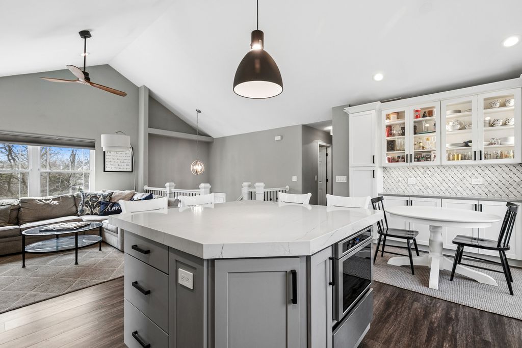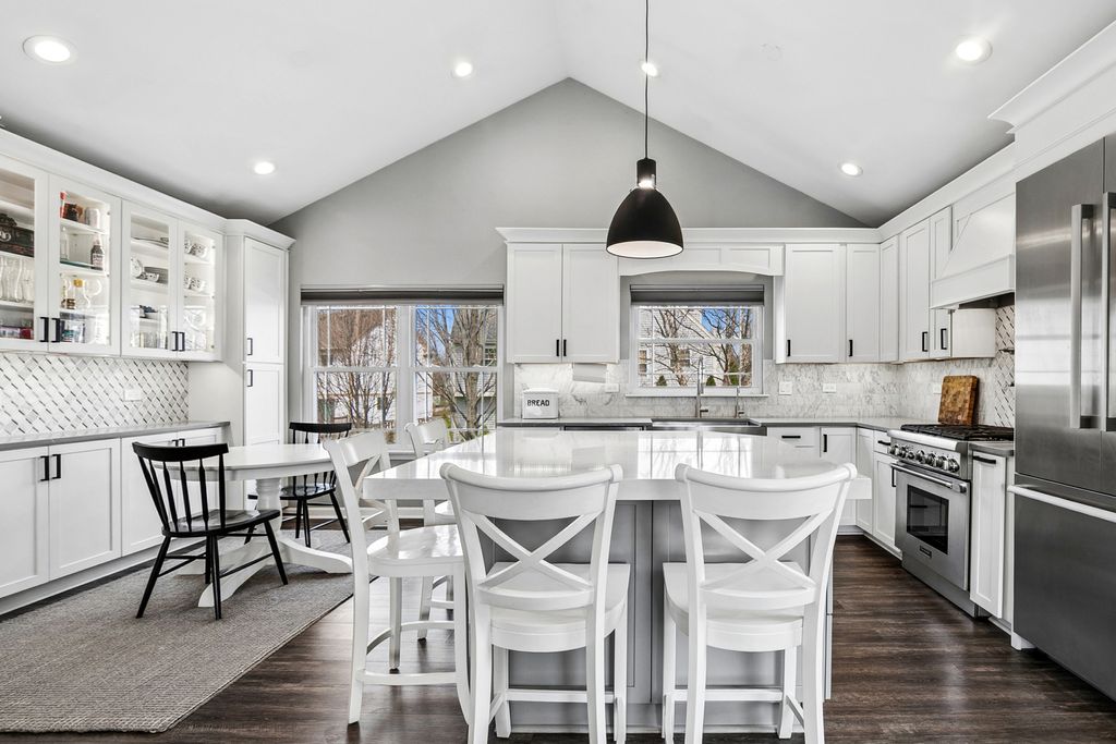 Welcome to 224 Penny Lane, a beautifully updated home in English Meadows. The stunning open kitchen, fully remodeled in 2019, is a chef's dream, featuring a large island, high-end Thermador appliances, and custom cabinetry. Relax or entertain in the inviting lower-level family room, complete with cozy heated floors, a fireplace, and direct access to the spacious backyard. The living room impresses with its soaring vaulted ceilings and is filled with natural light from the newer Anderson windows. Perfectly situated close to schools, this home offers both luxury and convenience.
