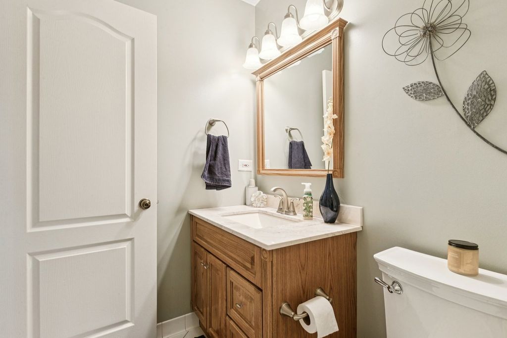 Welcome home to this beautifully upgraded Barkley model in the desirable Deerpass subdivision! This home has been meticulously maintained and offers a perfect blend of style, comfort, and functionality. Step inside to find stunning wide oak plank flooring throughout the main level, complemented by custom trim work, oversized baseboards, and elegant crown molding. The heart of the home is the impressive kitchen, featuring quartz countertops, crisp white cabinetry, a center island with soft-close drawers, and sleek dark stainless steel appliances-perfect for both everyday living and entertaining. The first floor also offers a bright breakfast area with a cozy fireplace, along with formal living and dining rooms, providing plenty of space for gatherings. Upstairs, you'll find three spacious bedrooms, including a comfortable primary suite. The finished basement expands your living space and features a large rec room-ideal for entertaining, a home theater, or play space, also potential to add a 4th bedroom next to the beautifully appointed full bath with a granite vanity and shower. Additional highlights include a stylish marble vanity in the hall bath, updated vinyl siding, and major mechanical updates with a roof approximately 10 years old and furnace and A/C replaced in 2018. Step outside to enjoy the paver patio overlooking a private backyard-perfect for relaxing or hosting guests. The finished and heated 2-car garage adds even more convenience and versatility. This move-in ready home truly has it all-quality upgrades, thoughtful details, and a fantastic location!