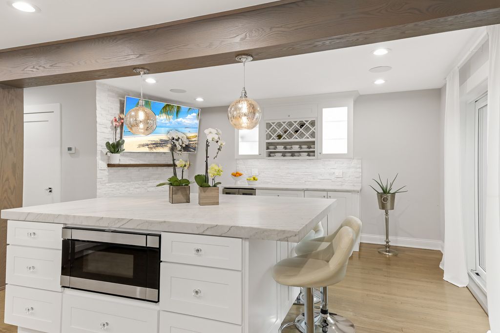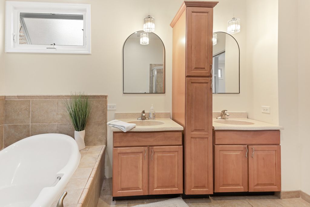 Welcome to this beautifully updated home where modern upgrades meet comfort and versatility in a highly convenient location. Step inside to discover a thoughtfully redesigned interior featuring three spacious bedrooms, including a stunning primary suite complete with a cozy wood-burning fireplace, a walk-in closet and a balcony. The inviting living room is filled with natural light from a charming bay window and enhanced by a sleek electric fireplace, creating the perfect space to relax or entertain. At the heart of the home is a gorgeous, oversized eat-in kitchen island with premium quartzite countertops, ideal for hosting, cooking, and everyday living. A custom-built office provides the perfect work-from-home setup, while the entrance adds both functionality and style. The fully finished basement with a separate entrance adds incredible flexibility-perfect for extended family, guests, or a private retreat. It features two additional bedrooms, a full bathroom, and a spacious recreation room. Located just minutes from the natural beauty of Schiller Woods, this home also offers easy access to major expressways and shopping at the nearby HIP Shopping District.