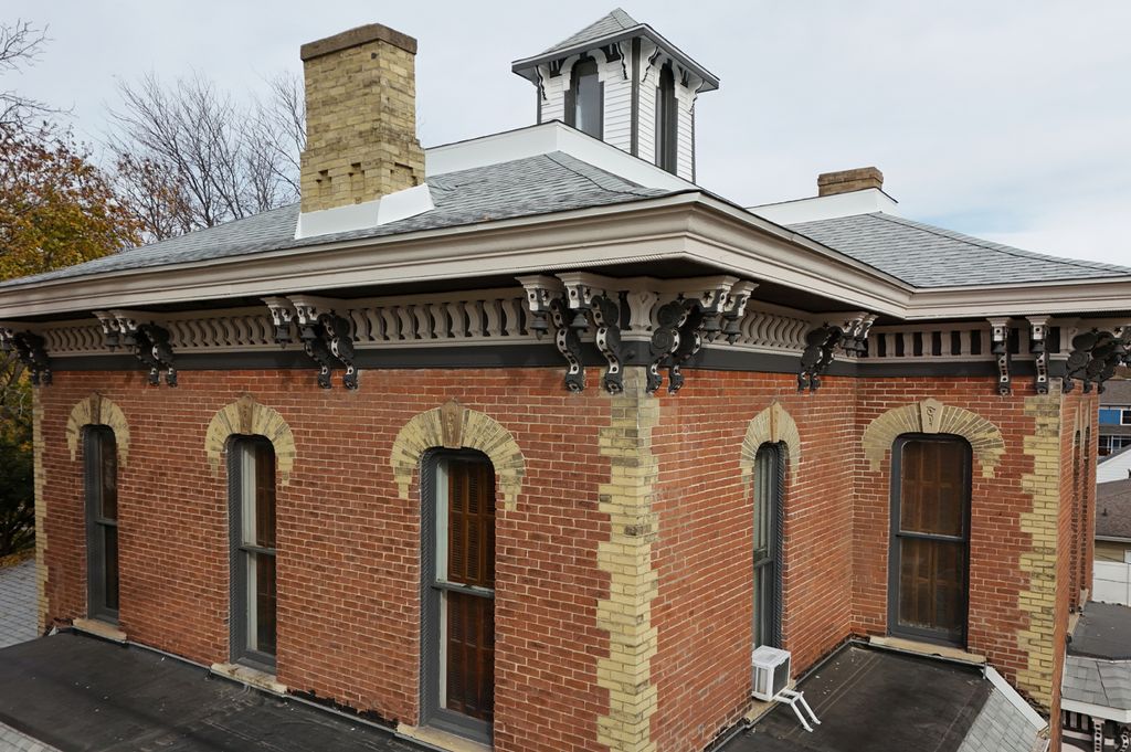 Motivated sellers with BIG price drop. Now listed below appraisal! Built in 1878, this beautifully restored Italianate Victorian house, known locally as "The Brick House," is a Morrison landmark rich in history and charm. Once home to suffragist Gertrude Foster Brown and later a beloved local restaurant, the property features exquisite 19th-century craftsmanship, including detailed woodwork, tall ceilings, and wrap around verandas. Restorations began in 2022 to present, and include a new roof, HVAC, water and gas lines, vinyl privacy fence, water softener system, and much more. The home retains many original features, including wood floors, decorative woodwork, fireplaces & curved stairway. The gathering rooms and bedrooms are generously sized, lending a spacious feeling. The custom kitchen has been newly renovated with high-end Forno appliances, all-new electrical, plumbing, and light fixtures, Pergo floors, solid-wood painted cabinets, hand-crafted island and countertops, brass accents and fixtures, a restored vintage cement sink, and a hood vent. The ceilings of the sitting room, dining room, hall, and parlor have elaborate plaster centerpieces. The doors and woodwork throughout the home are black walnut, and the newel post is a masterpiece constructed of black walnut and bird's eye maple. The first floor consists of 12 rooms: a family room, living room, dining room, sitting room, back entry or mud room, bedroom, kitchen, and large pantry. Two half baths (1 recently renovated) and a coat room are off the back entry. On the second floor, there are 4 bedrooms, a newly renovated full bathroom, a second kitchen, and laundry. The third floor has a finished, large open room and an unfinished space that can add additional living area. The cupola or Belvedere (accessible from the attic) and the second-story screened-in porch offer panoramic views. Three covered verandas adorn the house and offer scenic places to relax. There is a full basement with exposed brick and stone walls, and a finished shop accessible from inside the house or from outside. An extensive list of renovations completed is available upon request or to Realtors on the MLS. Some of the antique furniture is available for sale separately or can be negotiated into the sale price.