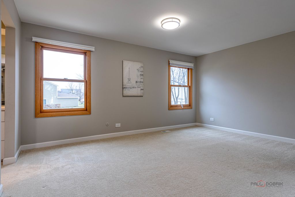 Step into spring with this beautifully updated home, where comfort, style, and natural light come together from the moment you walk in. Wood floors span the main level, complemented by an abundance of sunshine pouring through stunning Marvin windows, creating a bright and welcoming first impression. The recently remodeled kitchen features tall upper cabinets, quartz countertops, new stainless steel appliances and new island for everyday living and entertaining. The walkout family room offers a cozy brick fireplace and new carpeting creating the perfect place to relax. Upstairs, you'll find three generously sized bedrooms, all with ceiling fans. The primary suite includes a private sitting area-ideal for a home office, dressing space, or potential fourth bedroom-along with an updated bath and a large walk-in closet. The second-floor bathroom has also been tastefully refreshed. Additional updates include new neutral carpeting throughout the second level and family room, fresh interior paint, and updated hardware. Enjoy great curb appeal with a new concrete driveway and entryway, plus a beautifully landscaped yard featuring a new paver patio and new fence perfect for outdoor gatherings this season. Located near shopping, dining, and award-winning schools, this move-in ready home is a must-see this spring!