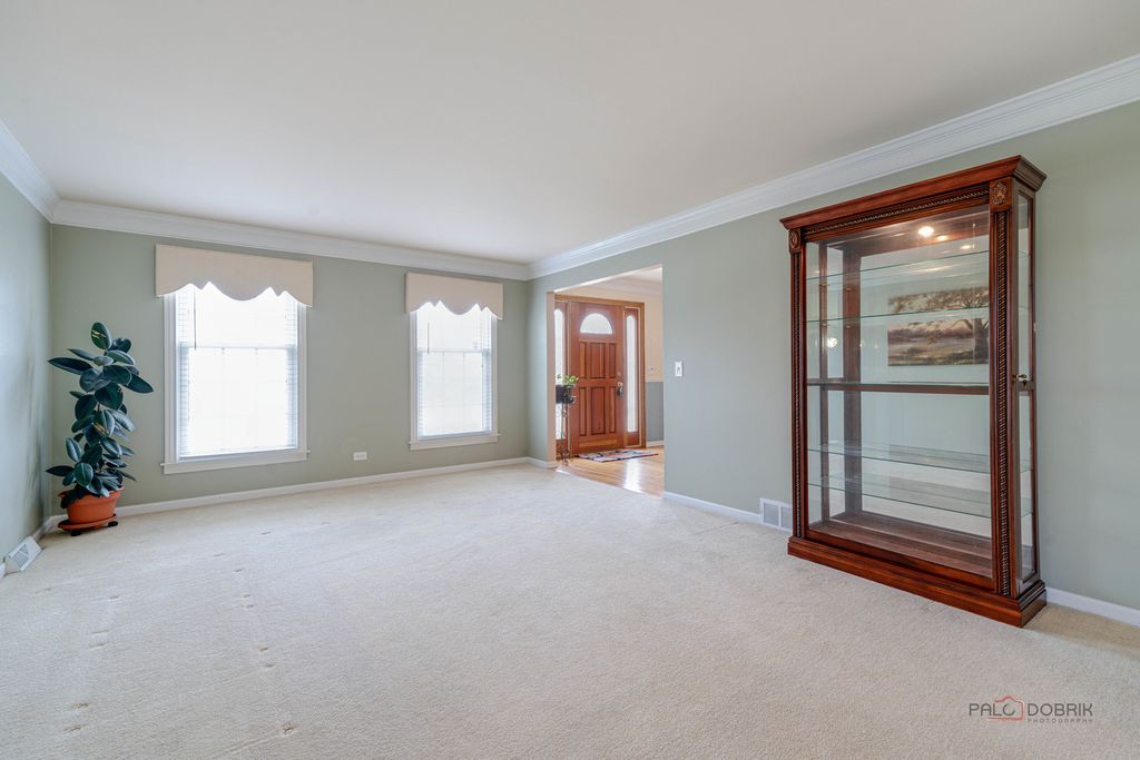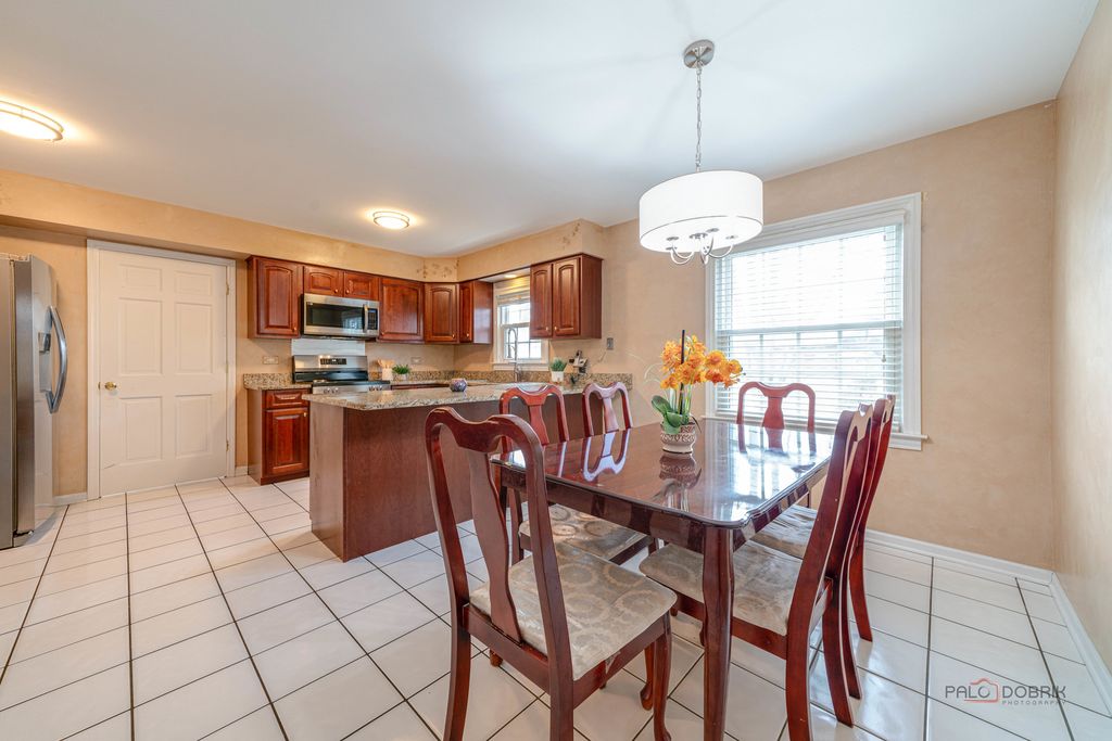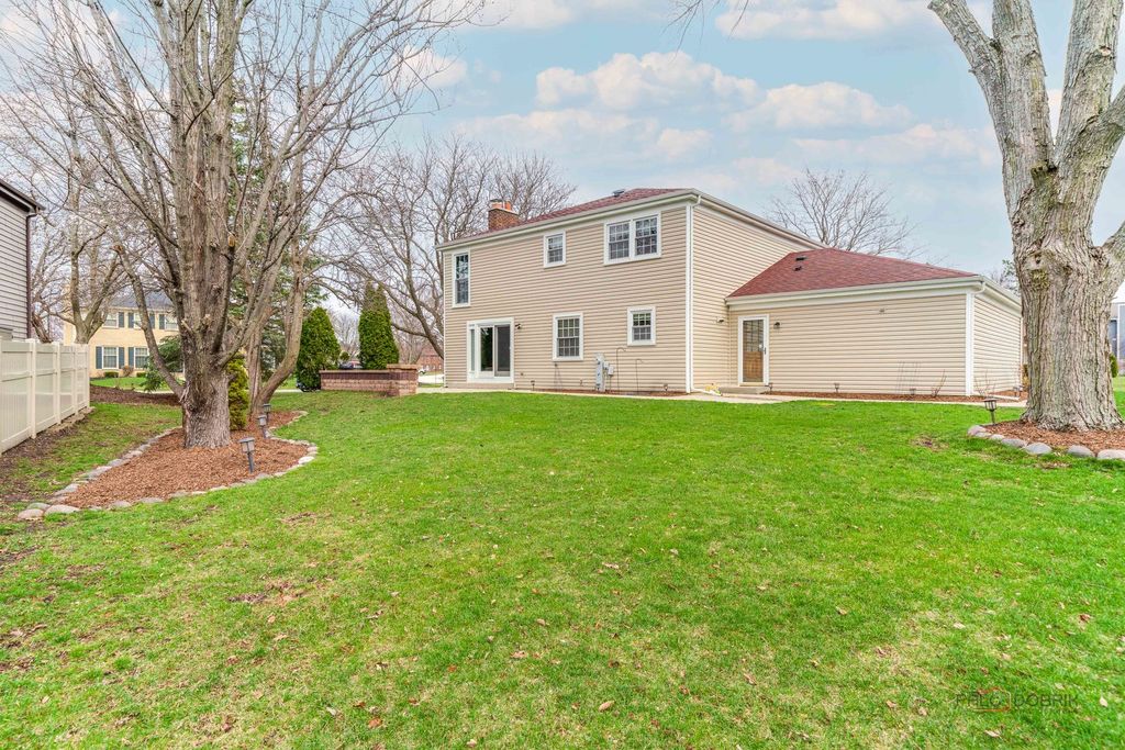 Beautiful 4-bedroom, 3.1-bath home in the sought-after Plum Grove Hills subdivision, ideally situated on a corner lot! Eye-catching curb appeal begins with a classic brick front. Step inside to a spacious living room and a formal dining room perfectly suited for both everyday living and special gatherings. The kitchen features a breakfast bar, granite countertops, newer stainless steel appliances, a pantry closet, and a generous eating area. Unwind in the inviting family room highlighted by a striking brick fireplace and sliding door access to the patio overlooking the stunning backyard-ideal for entertaining or relaxing outdoors. Convenient first-floor laundry and a half bath complete the main level. Upstairs, the primary suite offers a walk-in closet and private ensuite with dual-sink vanity, soaking tub, and separate shower. Three additional bedrooms and a full bath complete the second floor. The finished basement provides endless possibilities with a large recreation room, full bath, and ample storage. Walking distance to Birchwood recreation center which houses swimming pool, tennis court, indoor basketball court, and baseball field!!! Roof and aluminum siding 2021. Close proximity to train! Don't miss the opportunity to make this dream home yours!