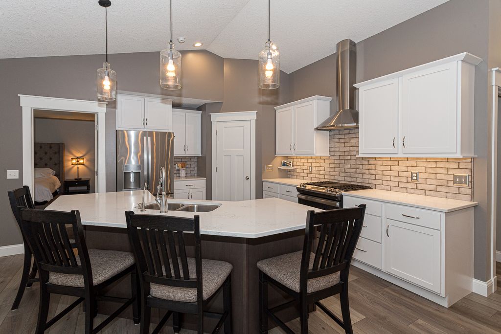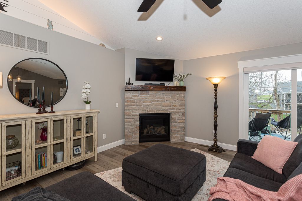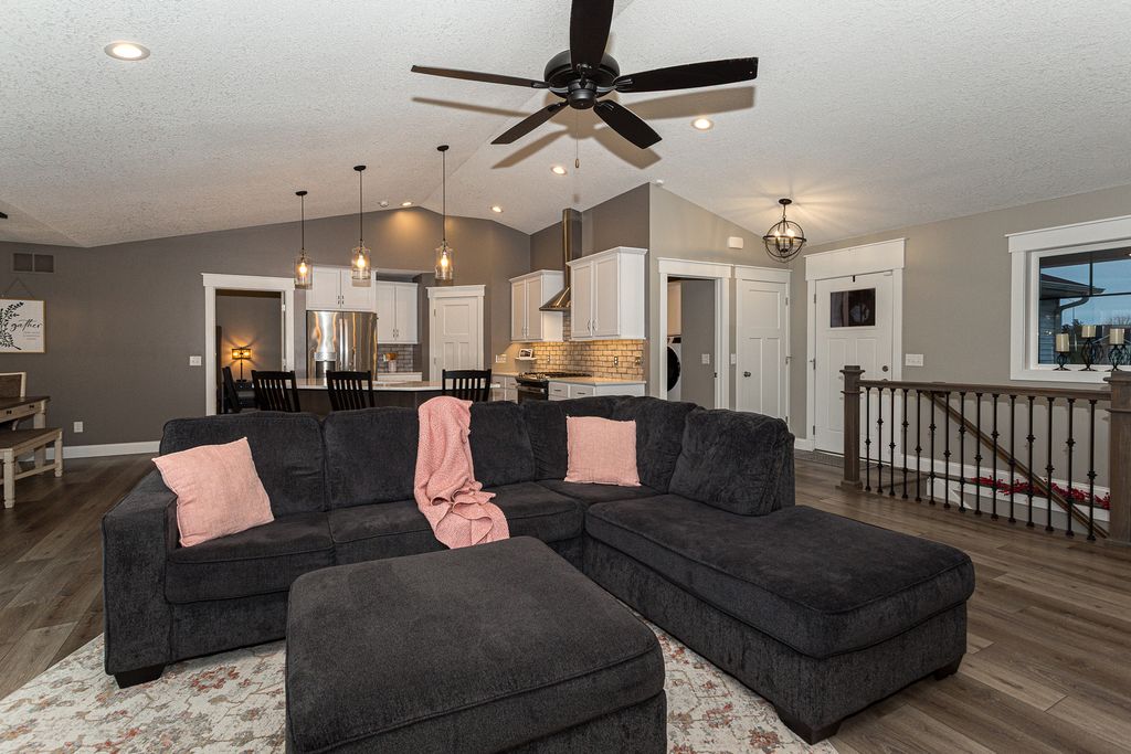 This like new ranch is located on a on a cul-de-sac, close to Quad Cities, Muscatine. The main level has carpet, luxury vinyl plank and tile floors, vaulted ceiling, and features a fireplace and a security system. Also on the main level are 3 bedrooms, 2 full baths and laundry. The kitchen features luxury vinyl plank floors, quartz counters, tiled backsplash, stainless steel appliances and pantry. Appliances stay with the home. The primary bedroom is located on the main level and features carpet floors, tray ceiling and walk-in closet. The primary bedroom's attached bath includes tile floors, quartz counters and tiled shower. The partially finished walkout lower level features a theater room, bedroom, full bath, office/study and storage area. Outside you'll find a treated wood deck and porch overlooking the yard with mature trees. Exterior features include a great view.