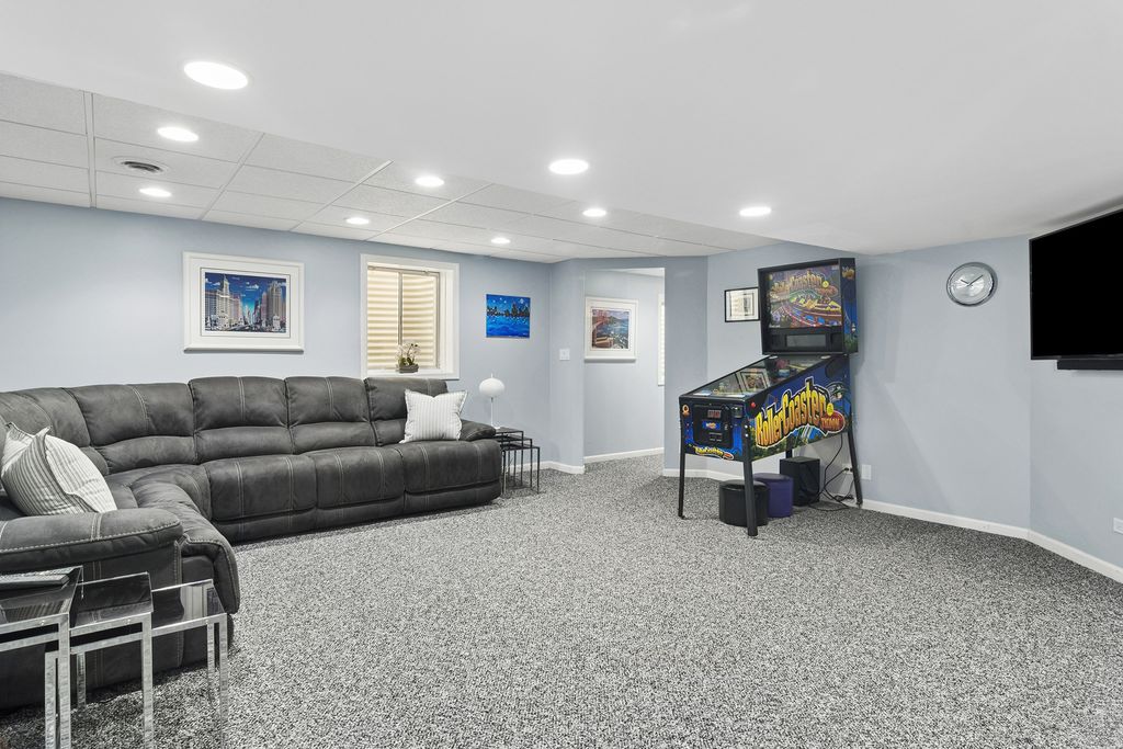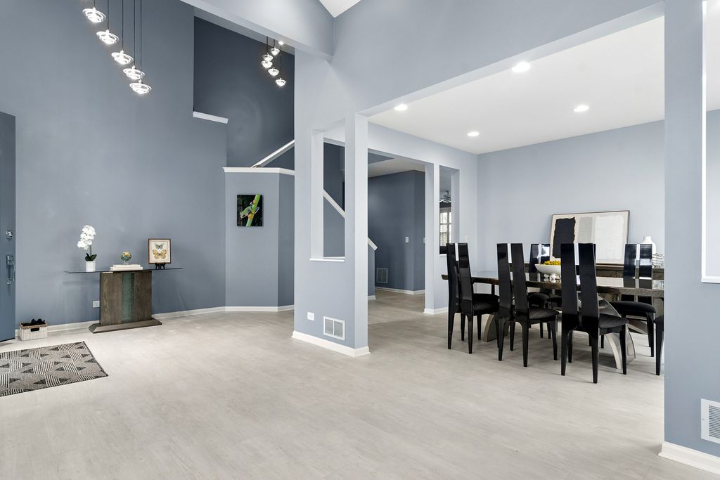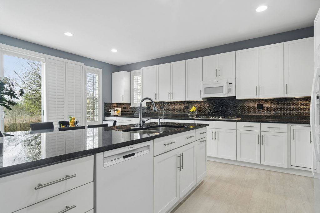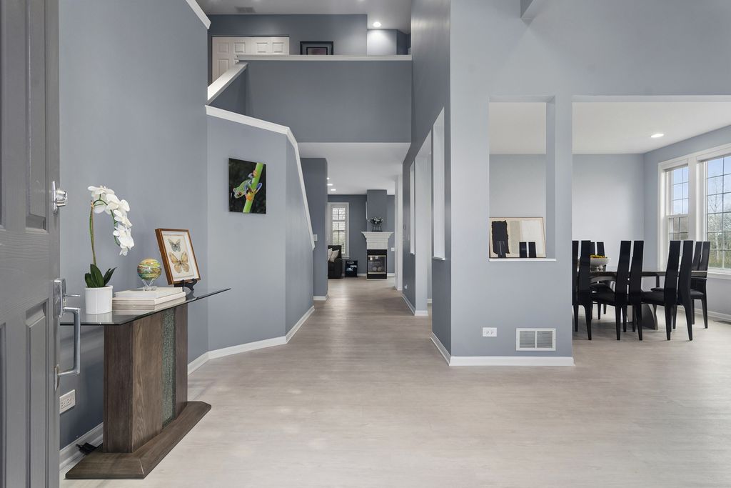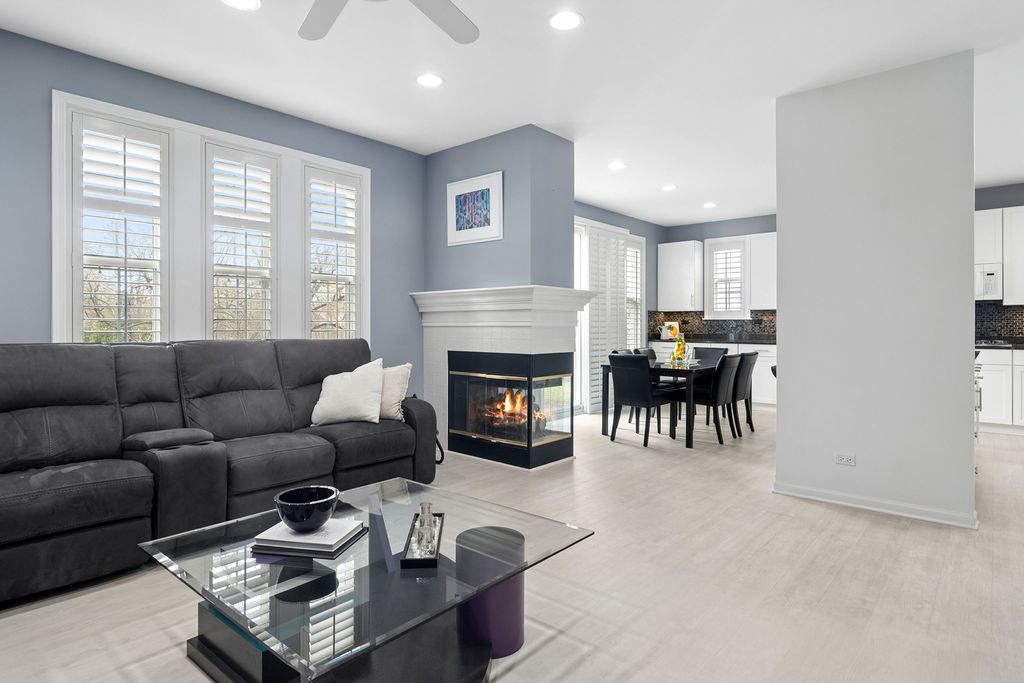 Step into this stunning Buffalo Grove home where space, style, and functionality come together beautifully. A 3-car garage and extended driveway provide ample parking, while the dramatic two-story entry with soaring vaulted ceilings sets the tone for the home's open and inviting design. The main level showcases an exceptional layout centered around a beautifully updated kitchen featuring white custom shaker cabinetry, white appliances, and a spacious, functional layout designed for both everyday living and entertaining. The kitchen flows seamlessly into the inviting family room highlighted by a striking two-sided fireplace, creating a warm and connected living space. Luxury vinyl tile flooring throughout the first floor enhances the home with a fresh, cohesive look while offering durability and easy maintenance. Just off the kitchen, step outside to a beautiful brick paver patio overlooking a private backyard with no homes behind, backing to open green space and a walking path-an ideal setting for relaxing or hosting guests. The professionally landscaped yard features outdoor lighting and a sprinkler system, enhancing both beauty and ease of maintenance for effortless outdoor living. The first floor also features a spacious living room and elegant dining room, an expansive mudroom/laundry room with built-ins, as well as a private in-law suite and additional office-perfect for today's flexible lifestyle. Upstairs, retreat to the luxurious primary suite complete with custom closet systems and a spa-like bath. Three additional generously sized bedrooms, all with ceiling fans, and an updated hall bath complete the second level. The finished basement is a true extension of the home, offering incredible versatility with a recreation room, exercise space, craft room, media room, additional bedroom/den, and a full bath featuring a steam shower-creating the perfect space for relaxation and entertaining. Extensively updated for peace of mind, including newer roof (2020), windows (2018-2019), HVAC system with dual furnaces and AC units (2023), exterior paint (2023), newer hot water heater, and more. Additional features include an epoxy-coated garage floor, enhancing both durability and a clean, finished look. Ideally located near Meridian Middle School, Aptakisic Junior High, and Adlai E. Stevenson High School, as well as parks, shopping, and dining, this home offers the perfect blend of comfort, convenience, and lifestyle. A rare opportunity to own a move-in ready, highly versatile home with exceptional indoor and outdoor living in one of Buffalo Grove's most sought-after neighborhoods.