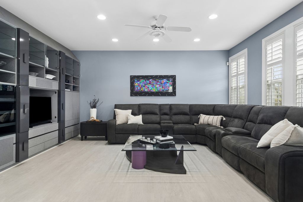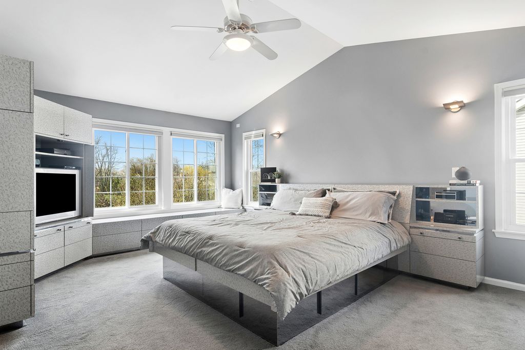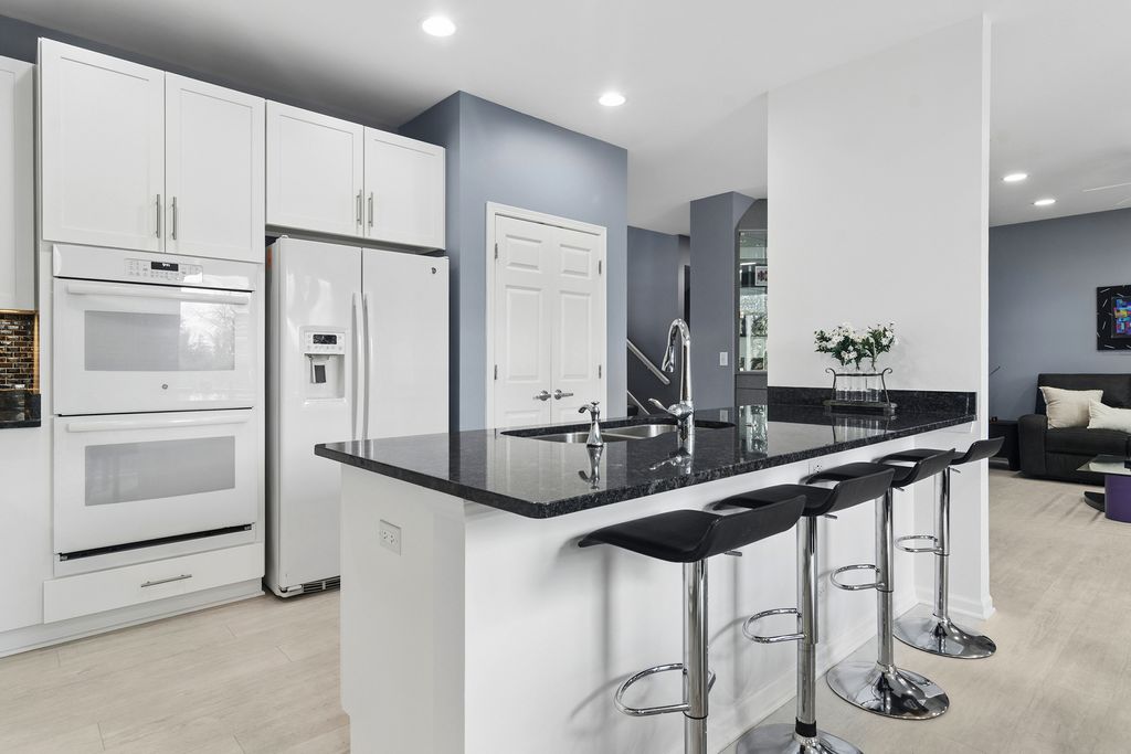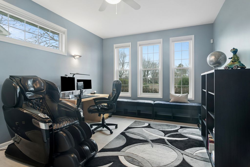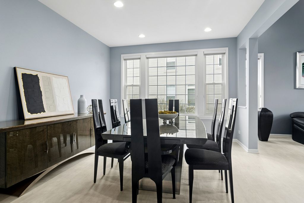 Step into this stunning Buffalo Grove home where space, style, and functionality come together beautifully. A 3-car garage and extended driveway provide ample parking, while the dramatic two-story entry with soaring vaulted ceilings sets the tone for the home's open and inviting design. The main level showcases an exceptional layout centered around a beautifully updated kitchen featuring white custom shaker cabinetry, white appliances, and a spacious, functional layout designed for both everyday living and entertaining. The kitchen flows seamlessly into the inviting family room highlighted by a striking two-sided fireplace, creating a warm and connected living space. Luxury vinyl tile flooring throughout the first floor enhances the home with a fresh, cohesive look while offering durability and easy maintenance. Just off the kitchen, step outside to a beautiful brick paver patio overlooking a private backyard with no homes behind, backing to open green space and a walking path-an ideal setting for relaxing or hosting guests. The professionally landscaped yard features outdoor lighting and a sprinkler system, enhancing both beauty and ease of maintenance for effortless outdoor living. The first floor also features a spacious living room and elegant dining room, an expansive mudroom/laundry room with built-ins, as well as a private in-law suite and additional office-perfect for today's flexible lifestyle. Upstairs, retreat to the luxurious primary suite complete with custom closet systems and a spa-like bath. Three additional generously sized bedrooms, all with ceiling fans, and an updated hall bath complete the second level. The finished basement is a true extension of the home, offering incredible versatility with a recreation room, exercise space, craft room, media room, additional bedroom/den, and a full bath featuring a steam shower-creating the perfect space for relaxation and entertaining. Extensively updated for peace of mind, including newer roof (2020), windows (2018-2019), HVAC system with dual furnaces and AC units (2023), exterior paint (2023), newer hot water heater, and more. Additional features include an epoxy-coated garage floor, enhancing both durability and a clean, finished look. Ideally located near Meridian Middle School, Aptakisic Junior High, and Adlai E. Stevenson High School, as well as parks, shopping, and dining, this home offers the perfect blend of comfort, convenience, and lifestyle. A rare opportunity to own a move-in ready, highly versatile home with exceptional indoor and outdoor living in one of Buffalo Grove's most sought-after neighborhoods.