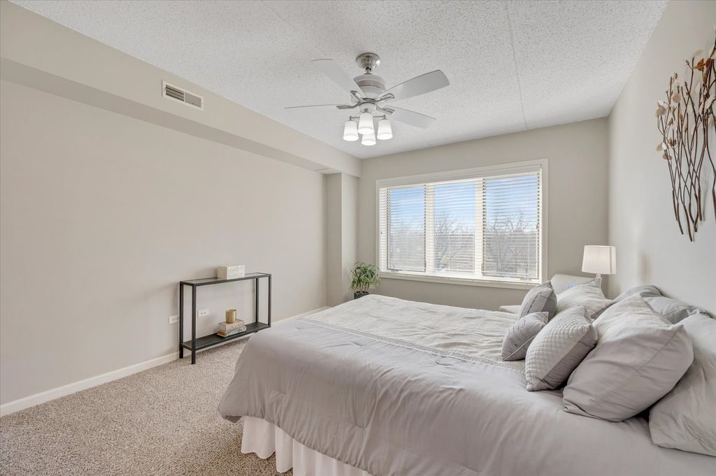 Discover effortless living in the heart of historic downtown Lombard with this commuter's dream condo. This spacious 1,342 sq. ft. home offers 2 bedrooms and 2 full baths, designed for both comfort and convenience. Enjoy generous storage with three large walk-in closets, plus an additional, fully secured storage locker conveniently located on the same floor. The kitchen features brand-new stainless steel appliances, perfect for everyday living and entertaining. Retreat to the oversized primary suite with a walk-in closet and private bath, creating a relaxing personal sanctuary. Additional highlights include brand-new carpeting throughout, a new heating and air conditioning system installed in fall 2025, a newly rebuilt and modernized balcony area, and the convenience of an in-unit washer and dryer. Brand new stainless steel appliance in the eat-in kitchen. An indoor heated parking space is also included. Ideally located just steps from the Metra train, as well as Downtown Lombard's restaurants, shops, and parks, this home puts everything you need right at your fingertips. A rare opportunity to enjoy comfort, convenience, and vibrant downtown living-welcome home!