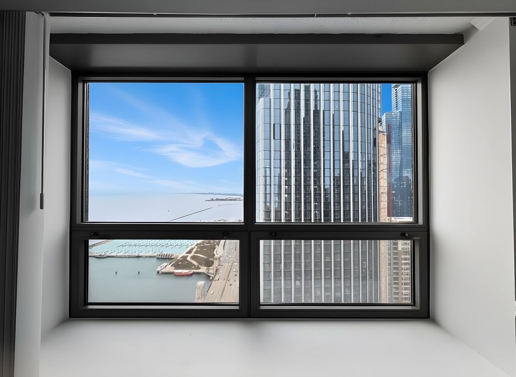 New painted, INCREDIBLE SWEEPING CITY SKYLINE AND LAKE VIEWS from this incredible Streeterville unit! See the Lake, River, and entire city in panoramic fashion! Large windows give way to jaw-dropping southern views and drench this unit with tons of natural sunlight. The beautiful kitchen features dark, custom cabinetry with gorgeous granite countertops and stone backsplash, stainless steel appliances, and luxurious tile flooring. The spa-like bathroom features custom mosaic tiles throughout, lavish tile flooring, and sleek glass shower door. The massive bedroom features new carpeting and custom closet system. Stunning hardwood flooring in living space with crown molding throughout the unit, and in-unit W/D. Building has 24-hr doorman, indoor pool, sauna, sundeck, gym, and party room! One premium indoor garage spot is included. Come to see it !