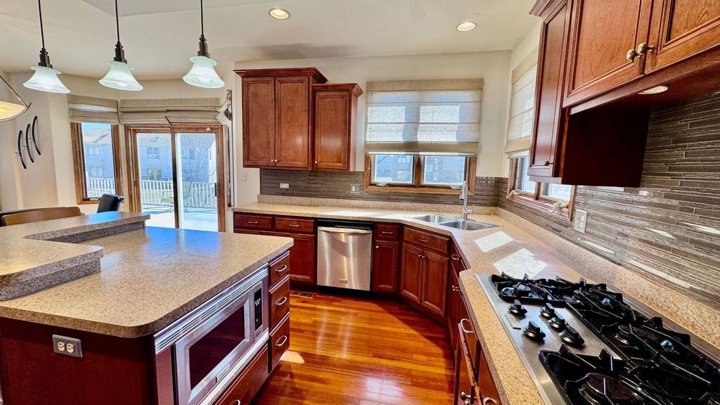 Highest and Best by Thursday, 4/16 at 11PM. This meticulously maintained custom-built, Shannon Model, luxury estate, offered by its original owner, presents a rare combination of timeless craftsmanship and expansive living. Commanding a premier presence in the neighborhood, the home features an additional 500 square feet of living space and a stately three-quarter face-brick exterior that offers both high-end elegance and low-maintenance durability. Upon entry, the dramatic two-story great room creates an immediate sense of scale, while the uniquely designed glass staircase serves as a modern architectural centerpiece that preserves open sightlines throughout all levels. The interior is defined by rich hardwood floors, detailed millwork, and oversized windows that flood the home with natural light, seamlessly connecting the open-concept family areas to a chef-inspired kitchen equipped with premium cabinetry, stainless steel appliances, and a large center island with direct deck access. The private quarters are equally impressive, led by a tranquil primary suite featuring a spa-style bathroom and separate his-and-hers walk-in closets. This bedroom has an attached bonus room separated by French doors that provides an overflow of home-in-home serenity. Designed for modern convenience, every bedroom offers immediate in-room bathroom access, including a second bedroom with a private ensuite and additional bedrooms joined by a functional Jack-and-Jill bath. The living space extends into a fully finished basement, a versatile retreat featuring a recreation area, custom bar, a second kitchen, and a full bathroom-perfect for grand-scale entertaining or multigenerational living. Complementing the home's functionality is a spacious 3.5-car garage and significant recent mechanical updates, including a new roof (2022), as well as zoned-two new furnaces and air conditioners and second-floor windows (all 2025). Set on a lush lot with a professional in-ground sprinkler system, this home is a masterclass in thoughtful design and enduring quality. Your dream, forever home awaits.