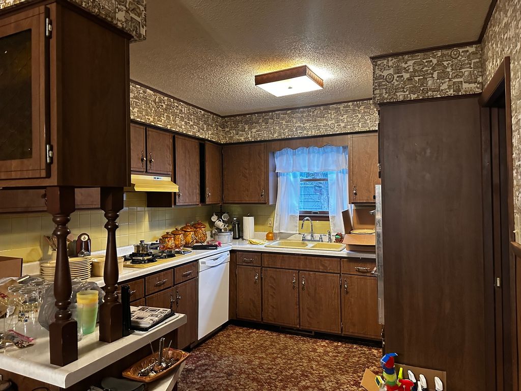 Looking for your next project? This 2 bedroom, 3 bath ranch style home has large rooms and is located on 3 lots! This home has 2 living spaces, one could be used as a 3rd bedroom, central A/C, gas heat, fenced backyard and a 2 car attached garage & a 2 car detached garage. This home needs TLC and updating.