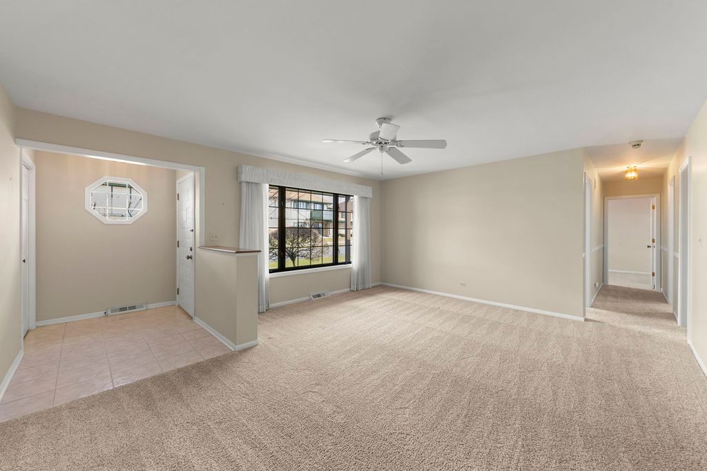 Tucked into a quiet Palos Park neighborhood and just a short distance to Lake Katherine, this spacious ranch townhouse offers true one level living with over 1,700 square feet of thoughtfully designed space. This is one of those homes that surprises you the moment you walk in. The layout offers multiple living areas including a separate living room, dining room, and a comfortable family room, giving you the flexibility for both everyday living and entertaining without ever feeling cramped. The galley kitchen includes an eat in area and connects easily to the rest of the home, while a dedicated laundry room and attached two car garage add to the convenience of single level living. All three bedrooms are generous sizes, including a primary suite with its own private full bathroom, plus an additional full bathroom in the hallway for guests or family. One of the most loved features of this home is the three seasons room, the perfect spot to enjoy dinner or unwind while overlooking the patio. It adds an extra layer of living space that truly sets this home apart. This home offers easy, low maintenance living in a peaceful setting while still being close to walking trails, nature, and everything Palos Park has to offer.