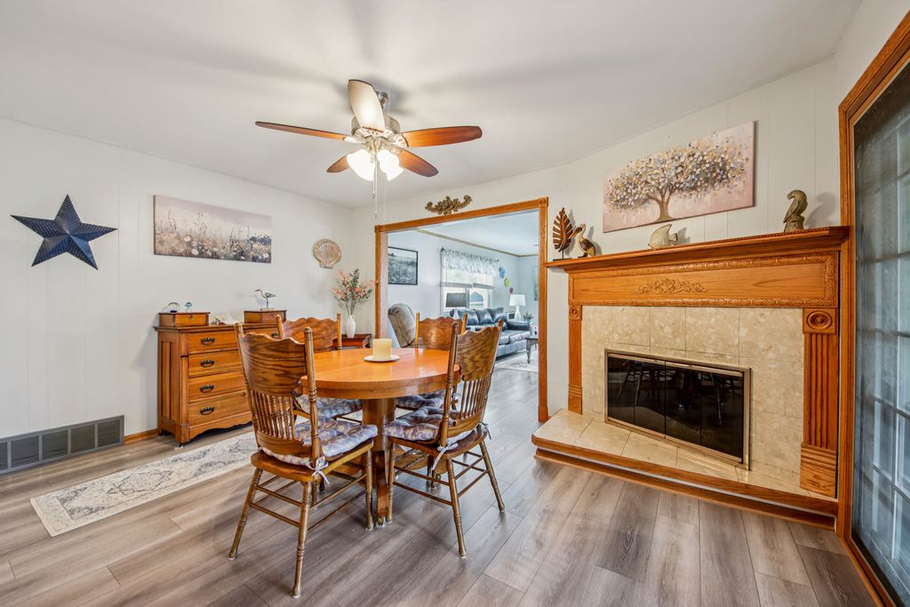 Charming ranch home in a prime Sycamore location-just minutes from schools, parks, and scenic walking paths! This well-maintained 3-bedroom, 1.1-bath home offers an abundance of living space, including a bright living room, spacious family room, and a beautiful three-season room-all on the main level. A covered front porch welcomes you inside to a sunny living room featuring a large picture window that fills the space with natural light. The kitchen is enhanced by a solar tube for added brightness, includes all appliances, and flows seamlessly into the dining room with a cozy corner fireplace. The expansive family room is a true highlight, boasting three walls of windows and the inviting three-season room is perfect for relaxing or entertaining to enjoy the summer. The private bedroom wing features three generously sized bedrooms and a well-appointed hall bath with a deep tub/shower combo. A conveniently located powder room adds extra functionality. The finished basement offers a large recreation room and exceptional storage space. Recent updates include a new roof and gutters. Outside, enjoy a concrete driveway, attached garage, and a huge fenced yard complete with a patio and firepit-ideal for outdoor gatherings. This home truly combines comfort, space, and location-don't miss it!