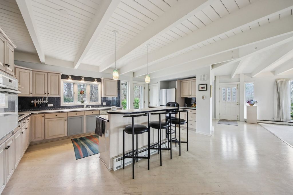 This unique, custom-built mid-century home offers exceptional curb appeal and 2,569 square feet of thoughtfully designed living space, featuring an open floor concept ideal for comfortable living and entertaining, a modern kitchen with a spacious island, stunning vaulted ceilings, and floor-to-ceiling windows that fill the home with natural light, along with a bright sunroom perfect for year-round relaxation and a rare combination of both a 2-car attached garage and an additional 2-car detached garage, all showcasing distinctive character and craftsmanship that truly sets this one-of-a-kind property apart.