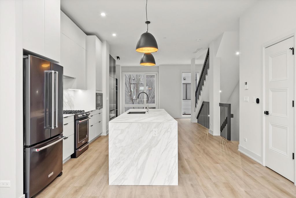 Welcome to AVNDL Estates, a modern residential enclave set within one of Chicago's most historic and vibrant neighborhoods-Avondale. Developed by award-winning Noah Properties and thoughtfully designed by Lisek Interiors, this private, gated community features 52 luxury townhomes ranging from approximately 1,950 to 4,250 square feet, each meticulously curated for contemporary living. Every residence offers the space, privacy, and security of single-family living, complete with a private gated front yard, expansive rooftop deck, attached two-car garage, and secure entry. This exceptional, sun-drenched 4-bedroom, 3.1-bath home spans over 2,240 square feet and showcases refined finishes throughout, including custom European cabinetry, a chef-inspired kitchen with oversized island and stainless-steel appliances, bespoke built-ins, a fireplace, spa-like bathrooms, and a private rooftop retreat ideal for entertaining or relaxing. Residents enjoy an impressive suite of amenities just steps from their door, including outdoor grilling and dining areas, a fenced dog run, pet grooming station, and a state-of-the-art indoor fitness center equipped with full weight and cardio equipment, private changing rooms, and multiple 60" TVs. Move-in ready and fully outfitted with custom closets and neutral window treatments throughout, this home presents a rare opportunity to experience elevated urban living in a secure, thoughtfully designed community. Explore the property in 3D-click the 3D button to take a virtual tour and experience every detail firsthand.