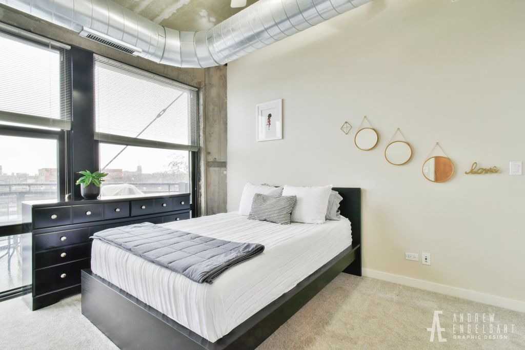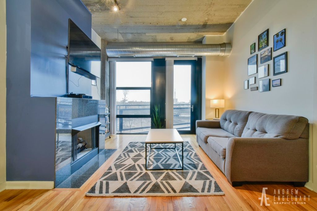 Brighten your days in this sun-drenched, south-facing one-bedroom plus den/one-bath loft-the largest floor plan in the building. Boasting fully enclosed rooms, a private suspended balcony, soaring ceilings, and luxe architectural details, the home is flooded with natural light and features hardwood floors throughout the main living areas. The open-concept layout is anchored by a striking granite-clad fireplace and flows seamlessly into a well-appointed galley kitchen. Enjoy granite countertops, stainless steel appliances, rich cherry cabinetry, and an elongated breakfast bar illuminated by a contemporary three-tier cube chandelier. Retreat to the primary bedroom, which offers plush neutral carpeting and two spacious double closets. Everyday convenience is elevated with a full-size in-unit washer and dryer. Embrace the carefree lifestyle of University Commons, an amenity-rich community featuring a heated outdoor pool, award-winning landscaped grounds, pet-friendly walkways, and a wraparound rooftop deck with breathtaking skyline views. Residents also enjoy a fitness center, party room, rentable theater, and dedicated on-site management. Ideally positioned between the vibrant neighborhoods of Pilsen, the West and South Loop, and the UIC campus, this home offers effortless access to Chicago's best dining, culture, and transit. Multiple public transportation lines are just steps away, with quick connections to all major expressways. A heated, secure garage parking space is available for 30k. Truly a must-see-schedule your private tour today!