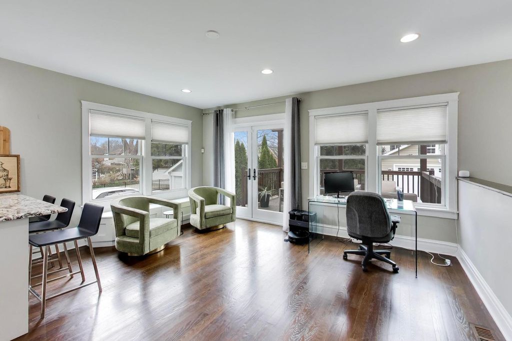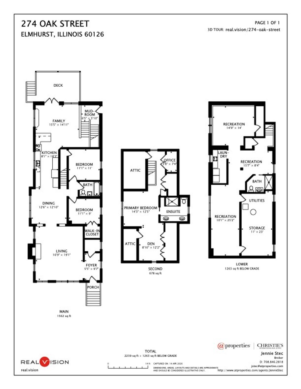 Update 3 bedroom, 3 bathroom, 2.5 car garage home walk to downtown Elmhurst and train on lovely tree lined street. Fully updated with primary suite including ensuite luxury bathroom with double sinks and large glass enclosed shower. Closet space is abundant here with a notched out office space included in this private sanctuary. Two additional bedrooms with an updated additional full bathroom. Nicely appointed kitchen with stainless steel appliances and granite countertops that opens to the dining room, living room, and a flexible space (kitchen eating area, family room, office, etc). Open stair case leads to a mud room with a large organized space for coats, shoes, etc. The English basement is fully finished and updated with a full bathroom allowing for a potential 4th bedroom below, including a large recreation room, play/exercise space, and laundry room. Hardwood floors throughout. French doors lead to the deck and expansive yard. Newer 2.5 car garage and enlarged driveway. Lovely remodel in a highly desirable walk to town location.