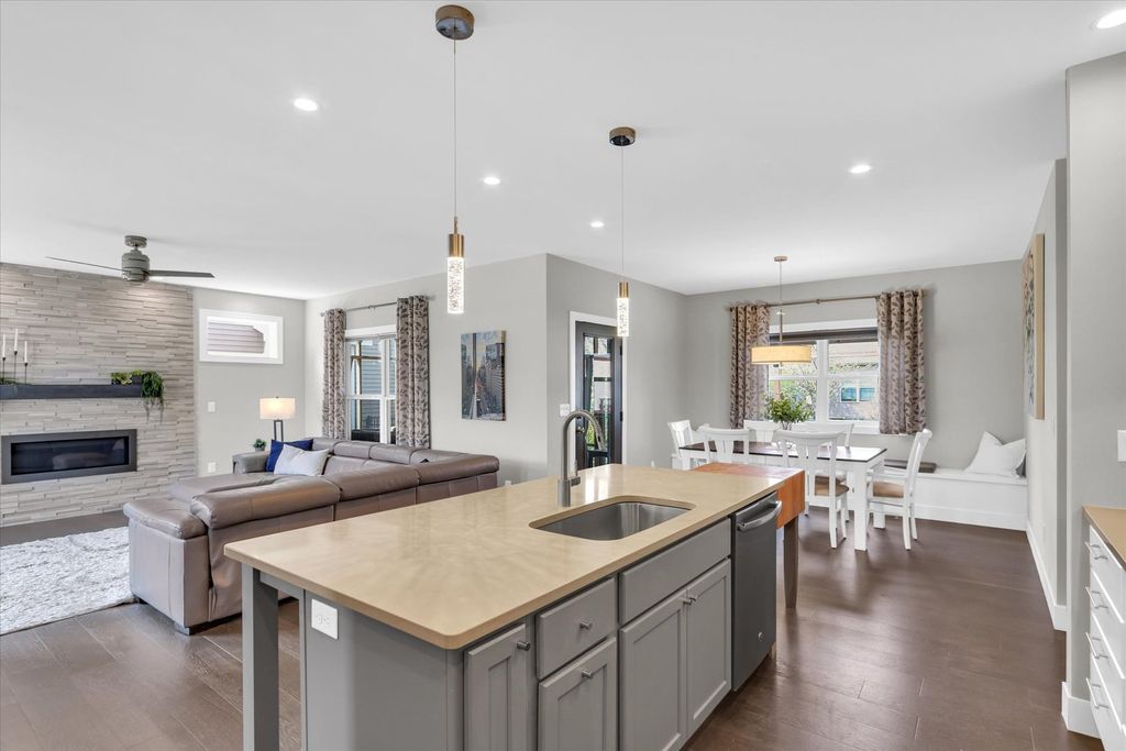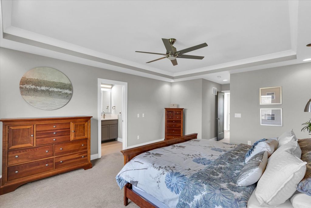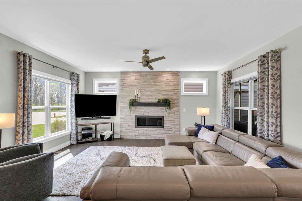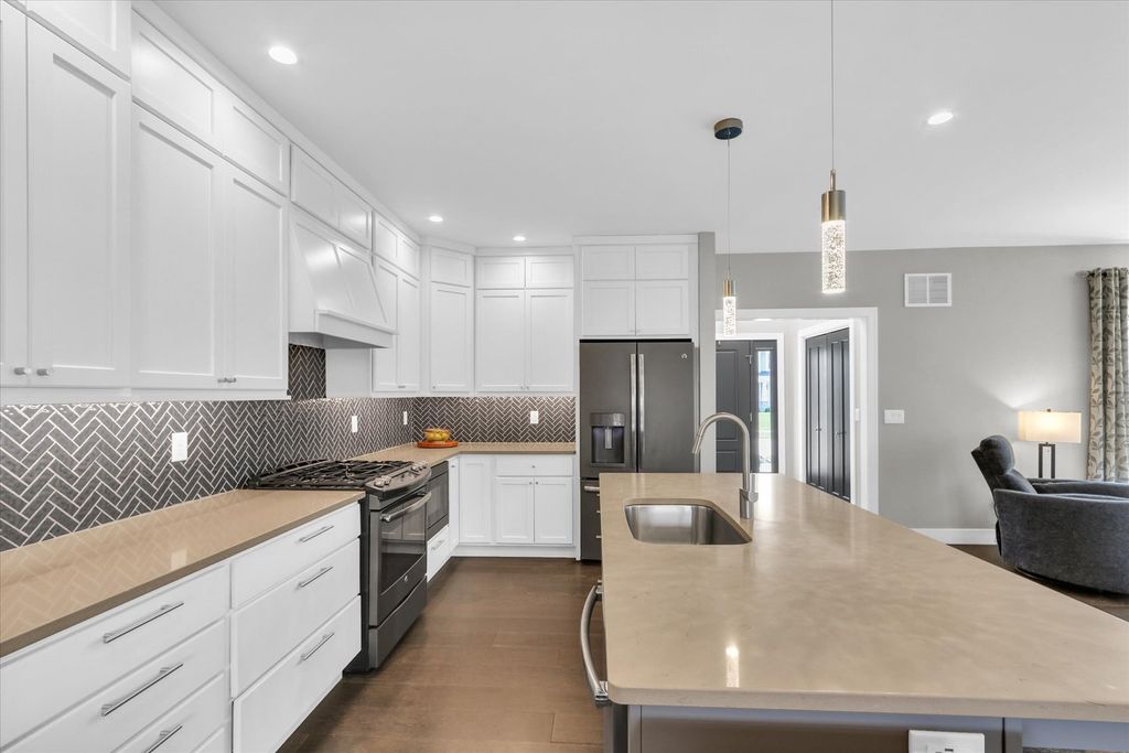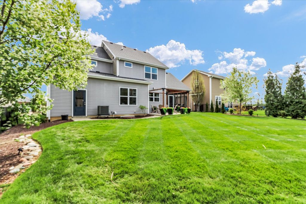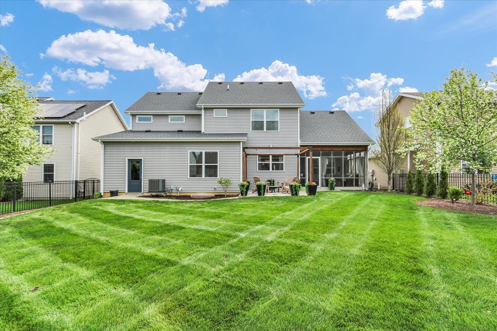 Gorgeous custom-built home by Signature Homes in the highly desirable Thornwood subdivision! Built in 2018, this better-than-new home is loaded with upgrades and thoughtful design throughout. The stunning kitchen features ceiling-height custom cabinetry, granite countertops, and exceptional storage-perfect for everyday living and entertaining. A rare and flexible floor plan includes a main-floor bedroom and full bath, ideal for guests, multi-generational living, or a private office. The luxurious primary suite offers a true retreat with heated floors in the spa-like bathroom. Enjoy outdoor living with both a screened-in patio and an additional patio with pergola-perfect for relaxing or hosting. Additional highlights include an oversized 3-car tandem garage, sprinkler system, and upgraded 75-gallon water heater. The unfinished basement is ready for your personal touch, complete with a bathroom rough-in and available floor plans to help bring your vision to life. For added confidence, the home has been pre-inspected-saving buyers time, money, and providing peace of mind.