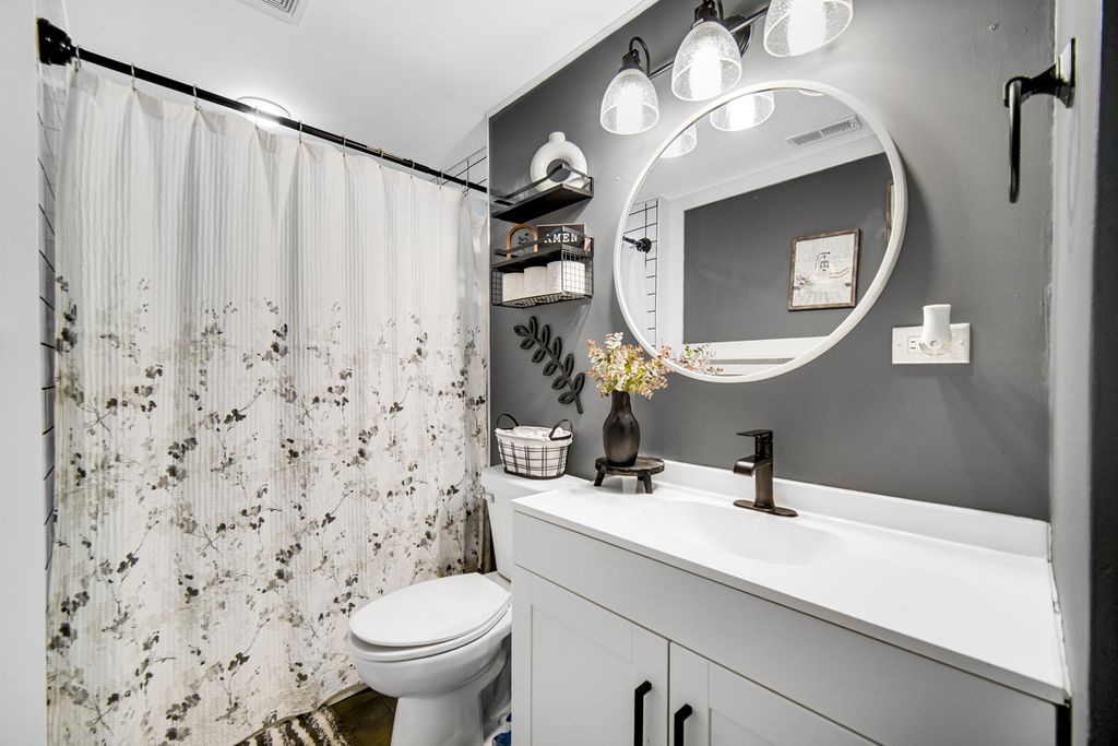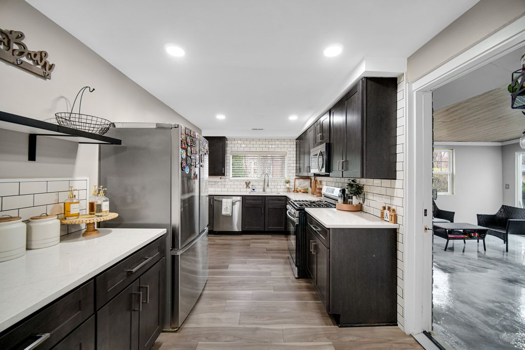 Stunning 2-bedroom, 1-bath, 1-car garage home with modern finishes throughout. Improvements include newer roof, HVAC, windows, flooring, cabinets, quartz countertops, lighting, and an updated bathroom. Kitchen features stainless steel appliances, all included stove, microwave, refrigerator, washer, and gas dryer. 14x15 sunroom adds valuable living space, plus an 8x10 stamped concrete patio for outdoor use. Move-in ready and easy to show-schedule your tour today.