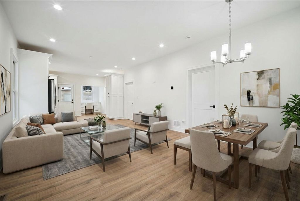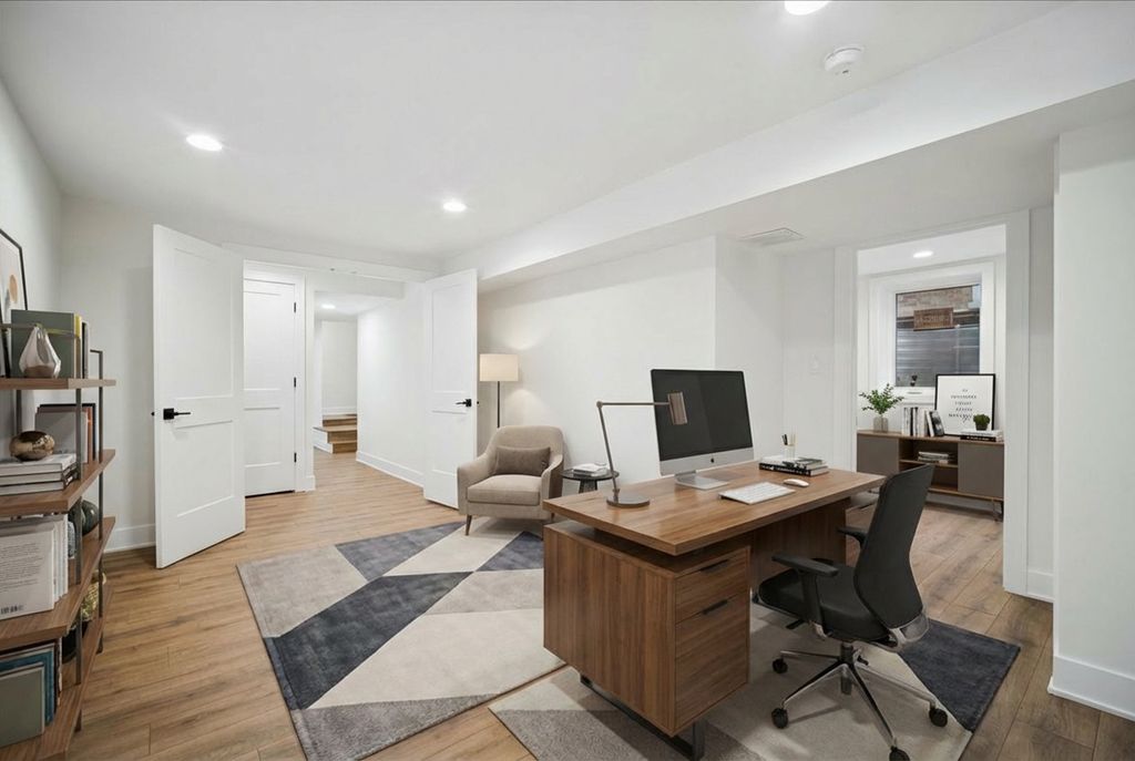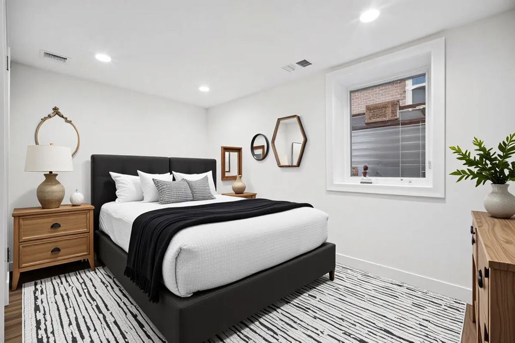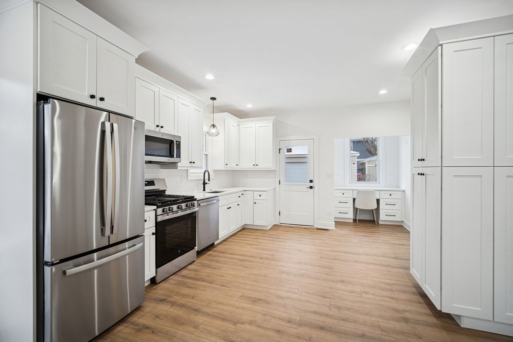 TOTALLY UPDATED in 2025 and MOVE IN READY RANCH with a finished basement and two full bathrooms! The main level features an open kitchen with space for a breakfast or dining table and home office desk, a comfortable living room, and two bedrooms served by a full bath with a walk-in shower. The finished lower level offers an additional full bath with tub, laundry area, and a bedroom with an attached bonus room-ideal for a second bedroom, nursery, office, or flex space-with potential to add a separate hall entrance. Hardwood floors run throughout the main level, with laminate flooring in the basement. Extensive updates throughout-see attached fact sheet for details. Major improvements include NEW HEAT AND AC 2026, SUMP PUMP 2025, APPLIANCES 2026, Roof 2022, brick driveway accommodating up to three cars, plus a two-car garage.