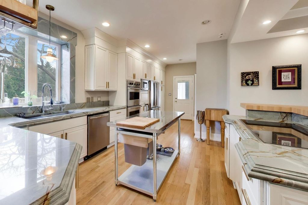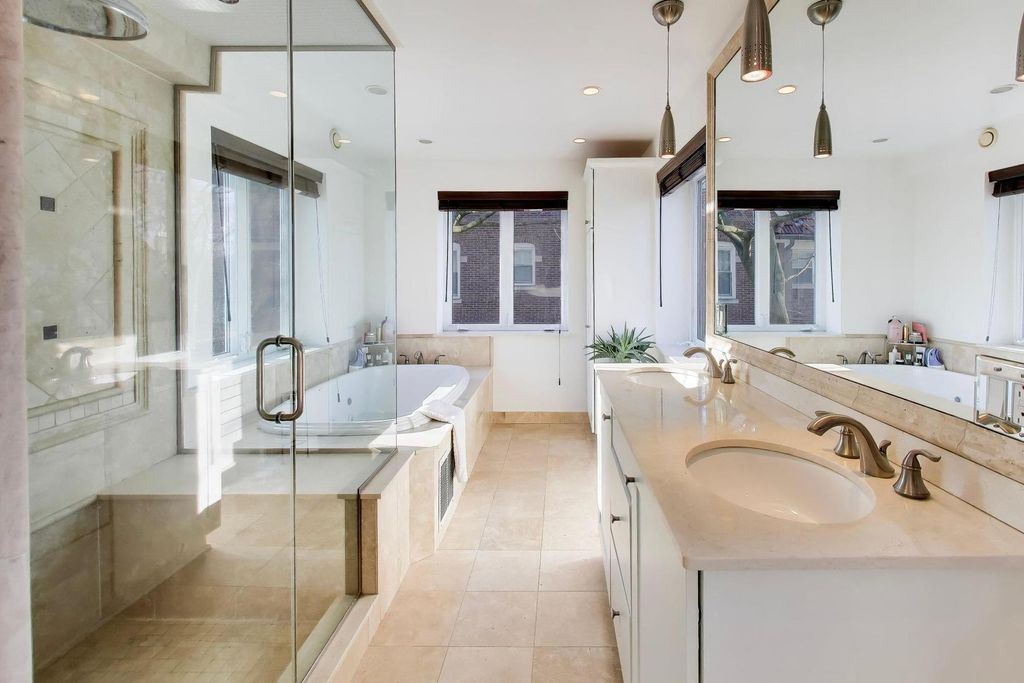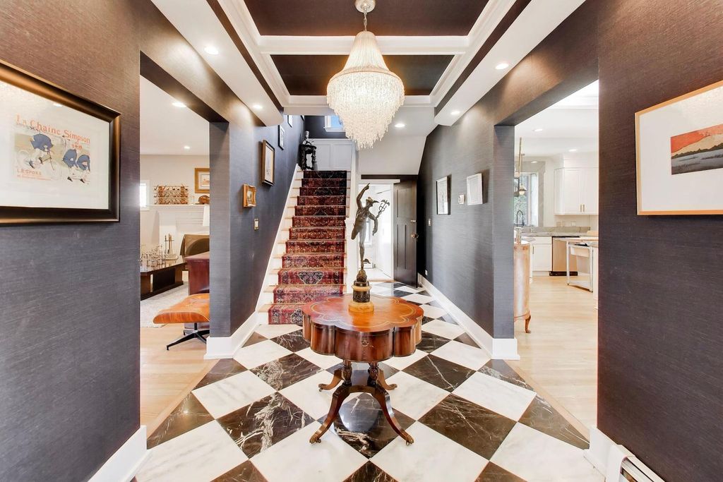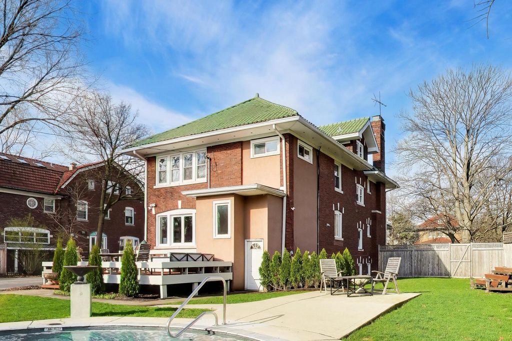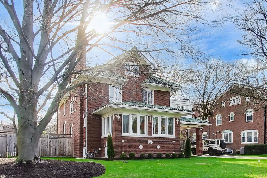 Welcome to 823 Jackson Ave- one of River Forest's most distinguished estates. Located in the heart of the coveted Estate District, this 1919 Buurma Bros-designed masterpiece blends Spanish, Prairie, and Arts & Crafts influences into a truly grand residence. Set on nearly a half-acre, this 6-bedroom, 5.5-bath estate is a rare offering combining architectural pedigree, privacy, and modern luxury. A stately porte-cochere and new automatic gates set the tone for the property's grandeur, leading to a wide extended driveway and a 3-car garage tucked discreetly at the rear of the home for both convenience and privacy. Inside, a grand foyer evokes the ambiance of a five-star European hotel with a custom front door featuring original leaded glass and knuckle hinges, checkerboard marble flooring, grasscloth wall covering, coffered ceilings, and a refurbished sweeping staircase. Completely reimagined through an extensive renovation, this home has been thoughtfully restored and elevated with high-end, timeless finishes. The chef's kitchen features custom "Swiss Coffee" cabinetry, Viking double ovens, French-door refrigerator, built-in convection microwave, Thermador induction cooktop with downdraft ventilation, and double-laminated Blue Roma quartzite counters quarried in Brazil, complemented by a 3" endcut maple butcher-block island. The bathrooms are adorned with sleek marble tile, retro pedestal sinks, and spa-inspired fixtures. The 2nd floor showcases 3 bedrooms + office/den with 3 full baths. The primary suite offers an oversized en-suite bathroom as well as new California Closets walk-in with cedar walls and ceiling. The junior primary suite with ensuite bathroom has an attached den/office overlooking the backyard. The 3rd level has 2 bedrooms and full bathroom. The expansive lower level includes a large recreation room, office/fitness space, guest bedroom, full bath, laundry room, storage. Newer home systems throughout include; plumbing, electrical, windows, rebuilt clay tile roof and flood control with back-flow prevention. The outdoor space is a private sanctuary - perfect for entertaining or unwinding - with a large grassy yard and a completely renovated saltwater pool (2024: new coping, resurfacing, winterized lines, and new mechanicals). Located on one of River Forest's most picturesque, tree-lined streets, this home offers an ideal balance of privacy and convenience - close to top-rated schools, parks, shopping, dining, and the Metra for an easy 20-minute commute to downtown Chicago. 823 Jackson is more than a home - it's a legacy estate, a luxurious retreat, and a timeless work of art.