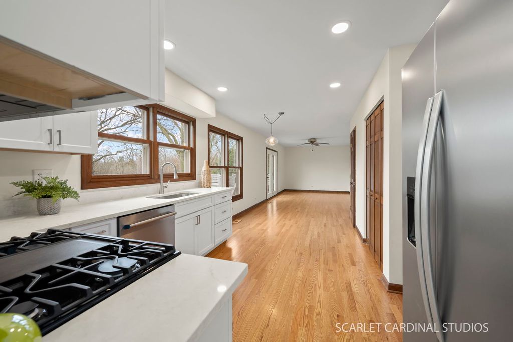 Welcome to this beautifully updated 4 bedroom, 2.1 bath home offering breathtaking nature views and an unbeatable setting backing to the 800-acre Wayne Grove Forest Preserve. Enjoy direct access to miles of scenic trails winding through lush woodlands, open meadows, and peaceful wetlands...perfect for outdoor enthusiasts and nature lovers alike. This thoughtfully updated, move-in ready home features a welcoming entry foyer and a versatile main-floor den, ideal for a home office or study. The spacious living and dining rooms provide the perfect setting for both everyday living and entertaining. At the heart of the home is a stunning, brand-new open-concept kitchen showcasing white cabinetry, quartz countertops, stainless steel appliances, a farmhouse sink with a stylish high-arc faucet, and beautiful oak hardwood flooring. The adjacent eating area flows seamlessly into the inviting family room, with easy access to the back deck and patio...where you can take in the incredible views and unwind in your own private backyard oasis. Upstairs, the primary suite offers two closets and an updated private ensuite bath with walk-in shower. Three additional generously sized bedrooms and a full hall bath complete the second floor. The bright, expansive unfinished basement features two above-grade windows that provide abundant natural light, along with ample storage space and a dedicated workbench area perfect for hobbies, or future finishing to create additional living space. Attached, heated 2 car garage. Located in a desirable neighborhood close to shopping, dining, and everyday conveniences, this exceptional home truly has it all! Come experience the perfect blend of comfort, style, and nature ...ready to welcome you home! 2025/2026 Updates- Complete Kitchen renovation 2026, carpeting in living room/dining room and upstairs bedrooms 2026, hard wood floors in kitchen and family room, updated light fixtures 2026, interior painting 2026, front door and sidelights 2026, back door to deck 2026