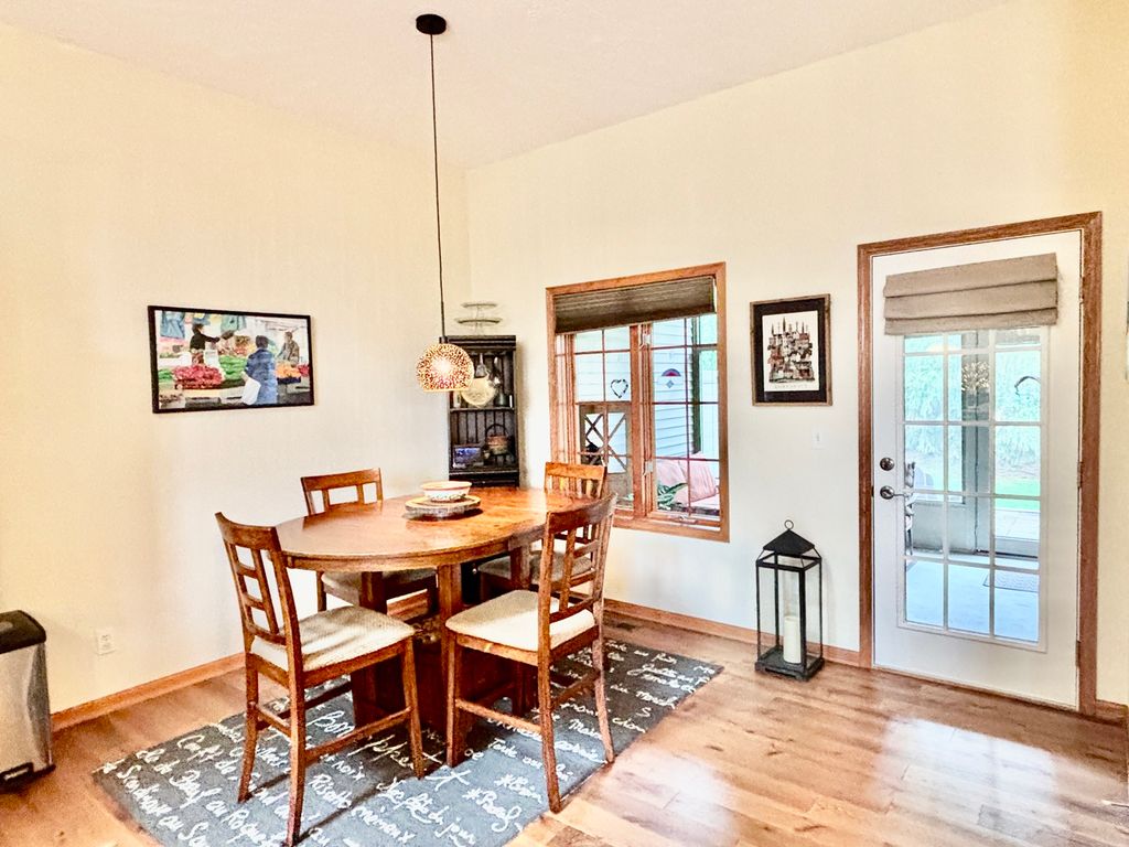 Amazing condo in Bel-Air Estates with newer hardwood flooring throughout the open layout of the living room, dining room and kitchen. Nice island separating the kitchen and the dining room. Newer stainless steel appliances. Pantry closet and small office added, plus a huge utility room with a utility sink. The master bedroom has coffered ceilings and a large master bathroom with a whirlpool tub, separate shower, and stool area for privacy. 2nd bedroom away from the master features cathedral ceilings and an eyebrow window. with another full bathroom close to it. The basement is partially finished for a large rec room area, carpeted and sectioned off with amazing barn doors to separate a storage area. 3rd full amazing bathroom and another room for themechanical room. Egress window so a 3rd bedroom could easily be made. Great sun room/enclosed porch that leads out to a paved patio and a privacy fence to block the neighboring patio. Hangar available for sale with the property if the buyer is interested.