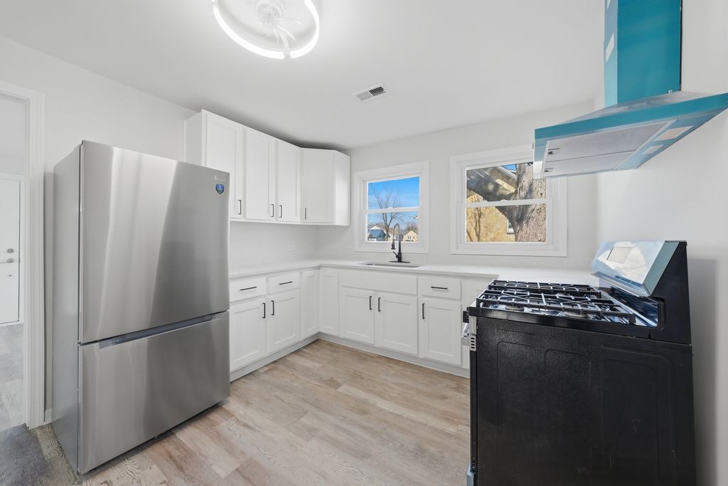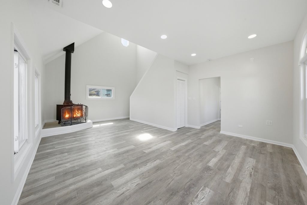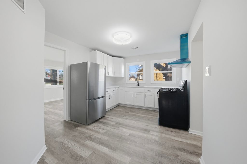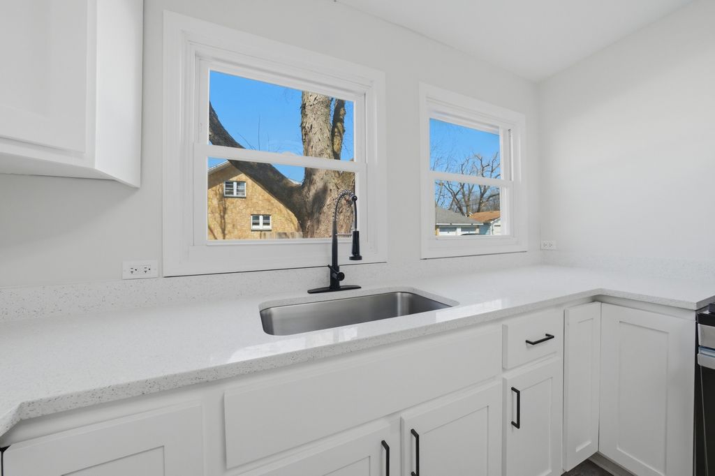 Welcome to this stunning, fully renovated home on a corner lot in Joliet! Features fresh interior paint, LVP flooring and updated light fixtures all throughout. This home features a bright and open living room with fireplace and elegant chandelier perfect for all your family gatherings. Updated kitchen with white cabinetry, matte black fixtures, new quartz countertop, new sink, and brand new stainless steel appliances. Remodeled bath with new sink, vanity and matte black fixtures. Wood stairs leading to upper level add charm. Private upstairs room with balcony. Freshly painted deck overlooks spacious yard with mature trees and ample space for an outdoor retreat. Detached 2-car garage with additional carport and extended driveway allows room for your RV, boat, atv or car collection. Move-in ready with great value!