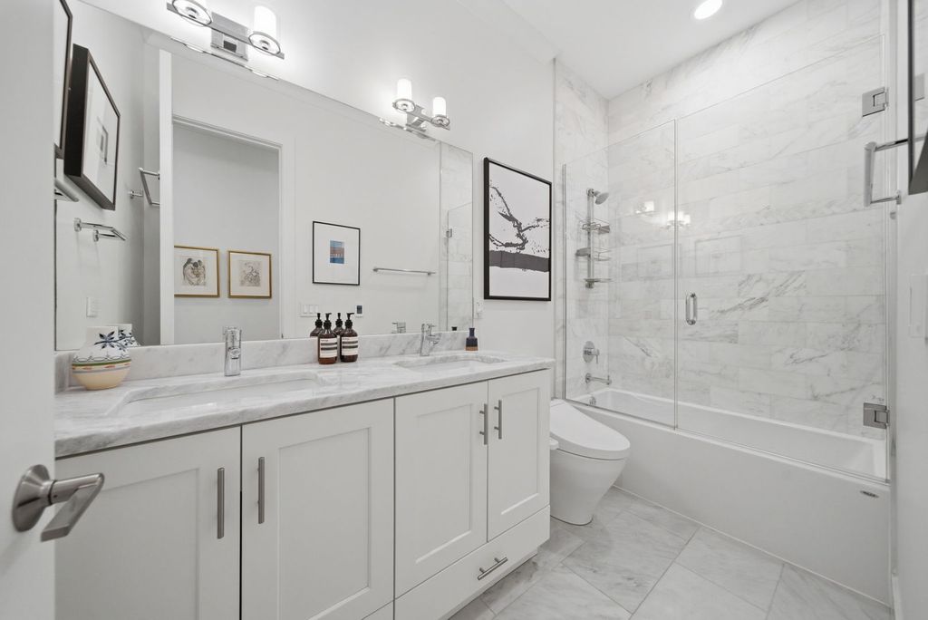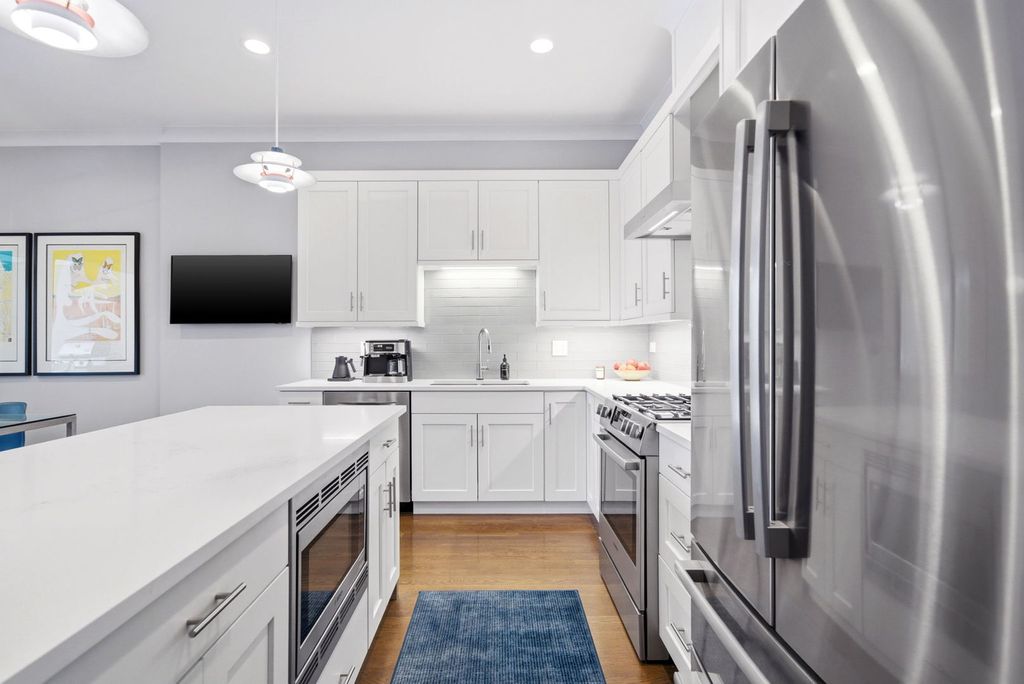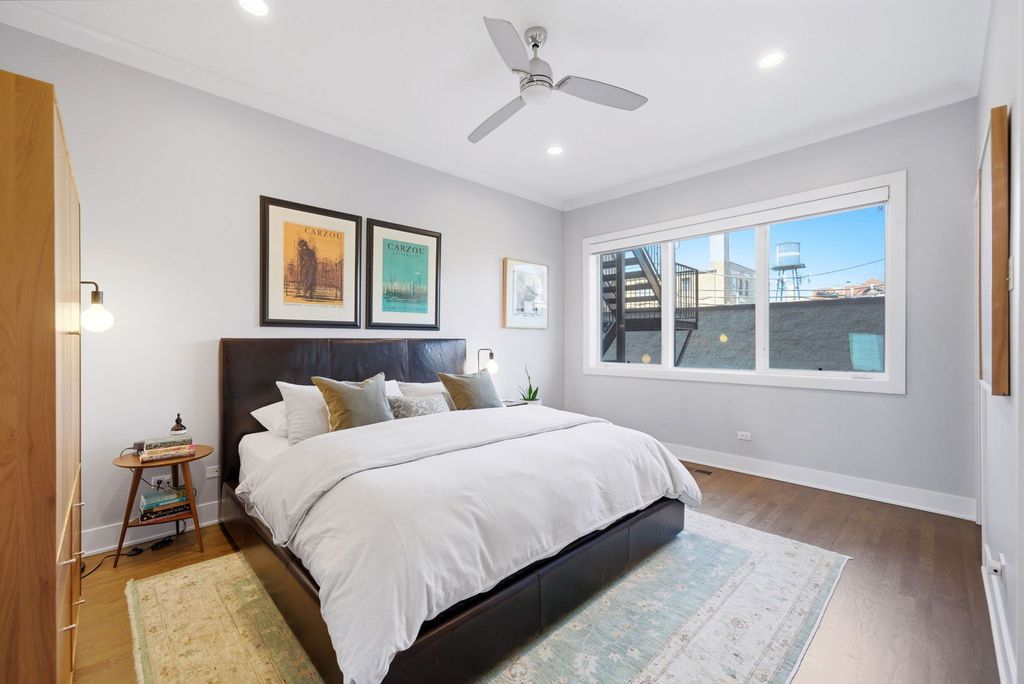 This is the one you've been waiting for! Incredible opportunity to own this stunning, 2400 square foot newer construction 3BR/2.5BA duplex in the heart of Andersonville, one of Chicago's most vibrant and exciting neighborhoods! This meticulous and modern 24 foot wide south facing home is better than new construction, featuring a generously sized main living/dining space that opens out to a massive 240 sq. ft. covered terrace with composite wood decking, ideal for entertaining, relaxing, grilling, and soaking in the sunlight. Beautiful open white kitchen has quartz counters, lrg breakfast bar, stainless Bosch appliances, undermount lighting and glass subway tiled backsplash. The large primary suite is conveniently located on the main floor and includes a walk-in organized closet, double quartz vanities, a walk-in shower, Grohe & Toto fixtures & heated flooring. This level is complete with a powder room, coat closet & pantry. Downstairs, you will be blown away by an absolutely enormous, extra wide family room with 10 foot ceilings, flooded with light! In this space, enjoy relaxing on an oversized sofa watching the latest latest Netflix hit, entertaining by the built-in wet bar with wine cooler & trendy open shelving, or using the space for a multitude of other things. The lower level also includes equally sized 2nd & 3rd bedrooms with ample closets and a sleek, white bathroom with double quartz vanity, quartz tiling and cozy heated floors. The full laundry room with size-by-side Maytag front loading washer & dryer complete this level. This fabulous home also boasts 8 foot doors throughout, extra storage in basement, and garage parking space. Incredible A+ location on tree-lined street, close to Red Line Train/bus lines, and right around the corner from all of the exciting restaurants, coffee shops, art galleries, boutiques, nightlife and so much more that Andersonville has to offer!