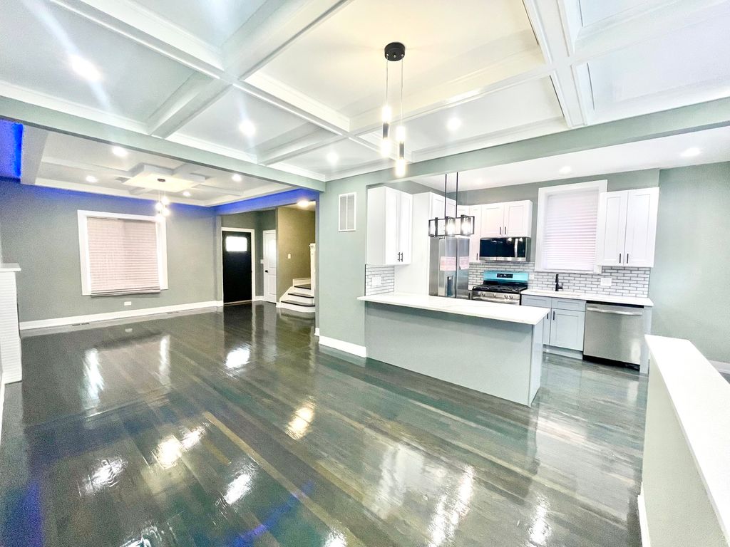 I am excited to list this absolutely gorgeous and completely remodeled Property. This home features a contemporary open floor plan with a huge living room and dining room highlighted by architectural, coffered ceiling designs. Key features of this property include spacious Living: 6 bedrooms in total, including 4 bedrooms on the second floor and 2 additional bedrooms in the basement. Chef's Kitchen with Custom 42" maple cabinets, elegant marble countertops, an eat-in kitchen bar, and new high-end stainless steel appliances. Finished Basement includes a full bathroom with a walk-in shower, a separate laundry room with a new washer and dryer, and a family room with exterior access.Outdoor is huge fenced backyard perfect for entertaining, a beautiful wood and wrought iron deck, a brand new 2-car garage, and a wrought iron fence for added elegance and safety. This home featues all these new renovations: new roof, new windows, new electrical, new plumbing, new lighting fixtures, and new flooring throughout, front and rear decks, etc. It also includes two new AC units for maximum comfort and 2 new furnaces. Located near transportation and expressways, this home is move-in ready and features low taxes. The seller is highly motivated, make your appointment today!