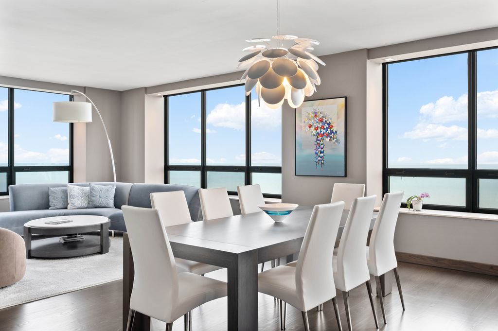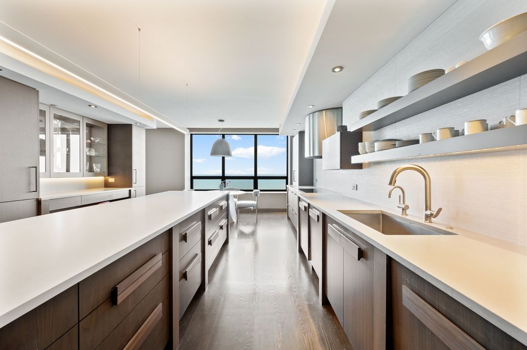 Rarely available, 4 bedroom, NORTHEAST corner, 3320 square foot floor plan at the luxurious Water Tower Residences. 60th floor home features impressive, sweeping lake and city views framing Navy Pier to the East exposure and up to Evanston along the shoreline of Lake Shore Drive to the North exposure. The lake seems more like an Ocean through the 24 oversized windows with motorized shades. Your gut to concrete rebuilt renovation was completed in 2016 utilizing the finest materials and fixtures, state-of-the-art technology and exceptional attention to detail. Your mint and turn key condition residence offers a spacious 4 bedroom/family room layout. This exceptional floor plan with unforgettable views from EVERY ROOM in the home features exquisite hardwood floors, Smart House with the Elan system that controls the lighting, shades, music, TVs and the climate, within enormous room sizes for your lifestyle of easy living and gracious entertaining. Enjoy your large foyer, oversized custom designed eat-in kitchen with all the bells and whistles such as Miele appliances, an electric induction cooktop, and separate Subzero refrigerator and freezer. You will love your primary suite with an oversized luxurious bath featuring steam shower, an air jet freestanding tub, two large walk in closets and cozy sitting area. You'll appreciate the large additional bedrooms or offices, large walk in storage closets, and beautiful baths that make your place a gem. Your treasured home is perfectly located above the exclusive renovated Ritz Carlton Hotel offering you all the coveted amenities- concierge, room service, spa, fitness, indoor pool- that make you feel like you're living in a resort every day. On site valet or self- parking options available to residents and their guests. Dogs welcome too!