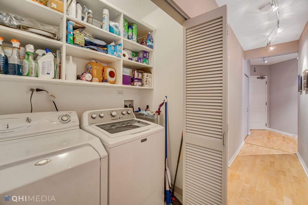 Spacious and immaculate 3 bedroom / 2 bathroom - 2000sq ft - with 2 outdoor spaces adding an additional 120 sq ft - expanded living and bedroom areas with hardwood floors throughout. Chef's kitchen features upgraded Italian Scavolini cabinets and Dacor double oven, beautiful tile backsplash, and plenty of counter space. The kitchen opens graciously to the dining, living/family room area. Living/Family room is spacious enough for a play area, grand piano, or den/office. Wrap around balcony off the living and dining area, large enough for seating, dining, and grilling. Additional balcony off 2nd bedroom, both with north and east city views. Primary bedroom suite offers a spa-like bathroom with double vanity, separate shower, luxurious soaking tub and linen closet. Split bedroom floor plan with 3rd bedroom located on opposite side, ideal for privacy. Four large walk-in custom closets providing ample storage. Laundry closet with large capacity side by side washer/dryer and shelving for storage. Elegant boutique building centrally located in the heart of River North. Steps away from Restaurants & nightlife, Whole Foods, Trader Joes, Jewel, Eataly, CTA Red Line, Michigan Ave shopping and much more. Building with 24 hour door staff, fitness center, guest suite for overnight guests, bike room, and additional storage included. Tandem parking for 2 cars side by side - additional $49k.