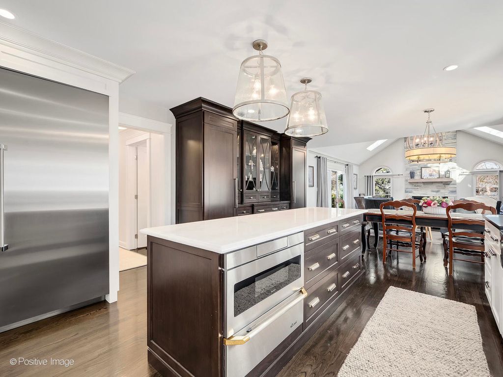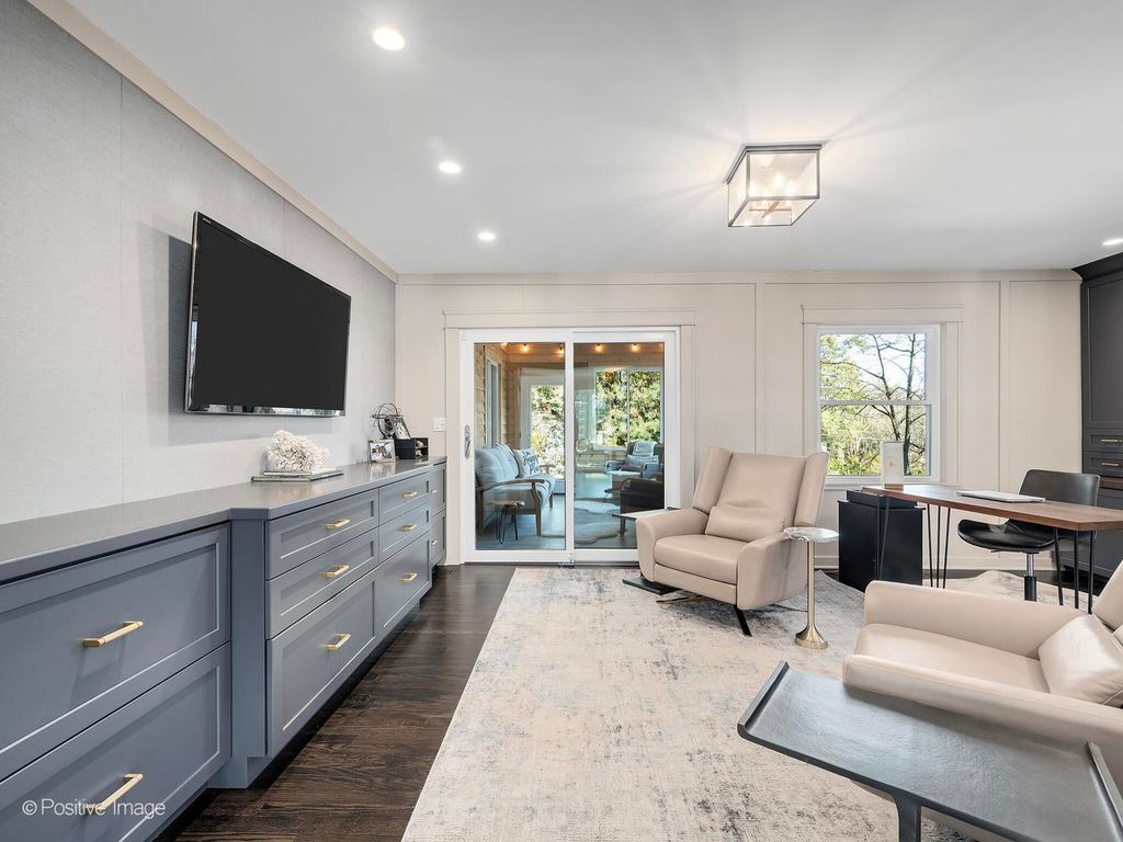 Set on a picturesque 75x165 lot in sought-after Fullersburg Woods, this extensively updated home offers over 5,800 sq. ft. of beautifully finished living space with recent major renovations throughout. The main level is designed for modern living, featuring expansive gathering spaces framed by picture windows that capture the serene, wooded surroundings of Fullersburg Woods. A timeless chef's kitchen w/Thermador appliances, oversized quartzite island w/seating, and custom cabinetry flows effortlessly into a cheery breakfast room and large vaulted family room with fireplace. A cozy cedar-lined sunroom retreat further enhances the main floor, while TWO private offices w/custom built-ins provide ideal work-from-home flexibility. An elegant dining room with yet another fireplace adds warmth and character for both everyday living and entertaining. Upstairs, a fully renovated second level includes a luxurious primary suite w/sitting room with built-in beverage/coffee station, private balcony, and a spa-inspired bath featuring heated floors, a heated towel rack, dual vanities, soaking tub, and walk-in shower, along with a custom walk-in closet. Completing the 2nd level are three additional generously sized bedrooms w/WIC, full bath, laundry center, and charming loft nook perfect for reading, studying, or a quiet retreat. The sprawling walkout lower level has been recently refreshed with new carpet and paint and offers exceptional versatility with a large recreation space, fireplace, NEW full bath with steam room, and dedicated exercise space. Outdoor living is equally impressive w/professionally designed landscaping, bluestone and paver patios, an outdoor kitchen, fire pit, and multiple entertaining areas. Located within award-winning D181 and Hinsdale Central (D86) zoning, this home offers a rare combination of interior and exterior updates, functional layout, and idyllic location. New Roof and new mechanicals! Welcome Home!